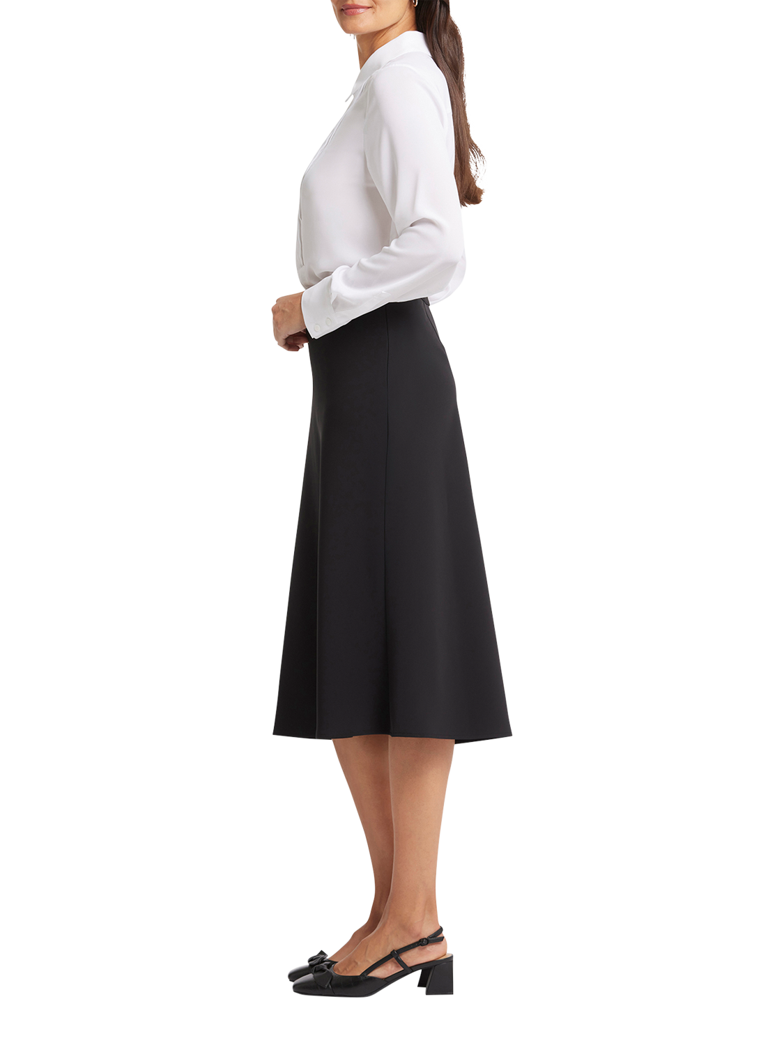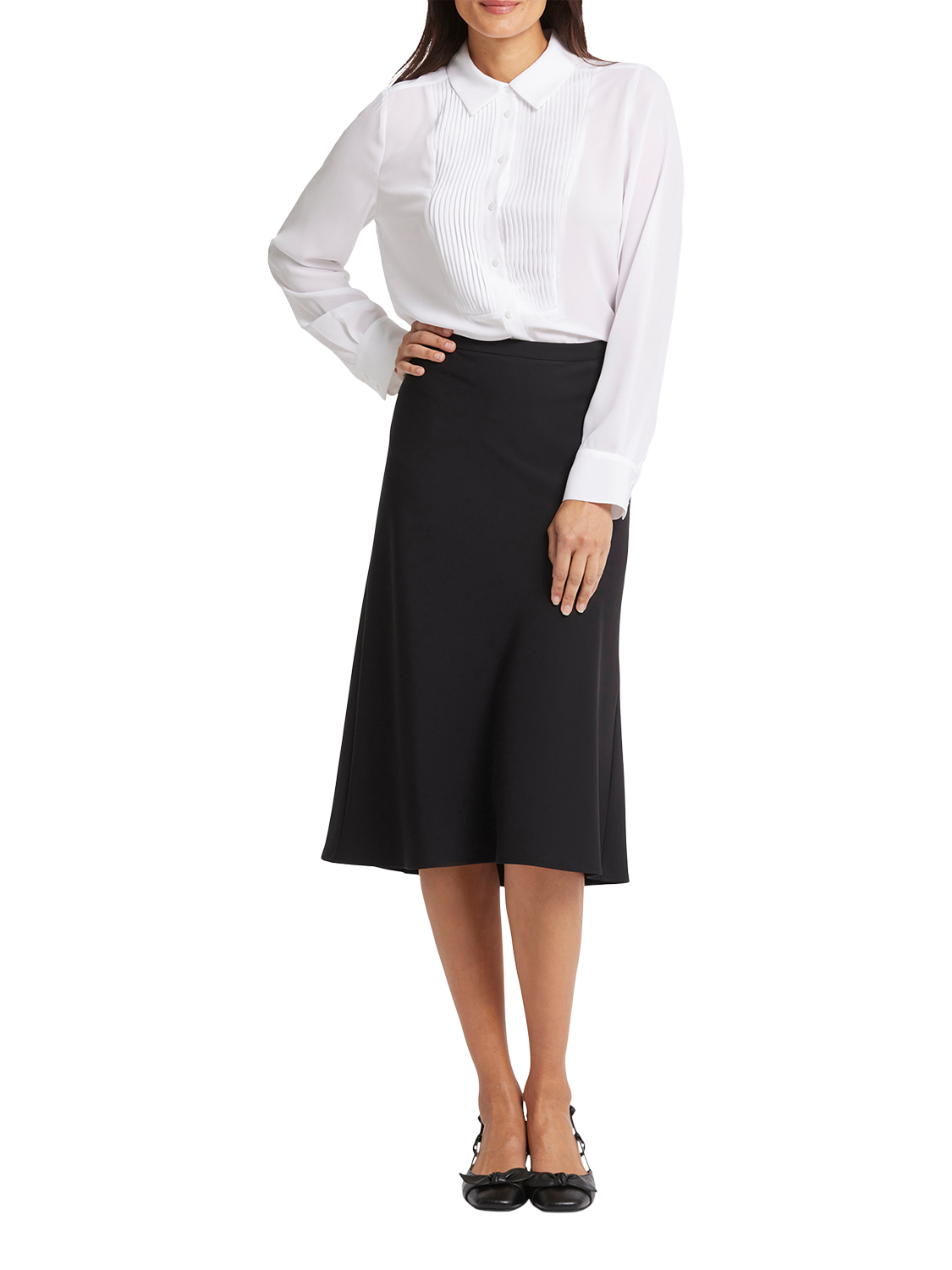 Upgrade your workwear wardrobe with this flattering crepe skirt from NYDJ. It has a fluid hem that moves with you and it falls to a midi length. Style with the Modern Blazer and a pair of heels or sandals for a sleek office look.