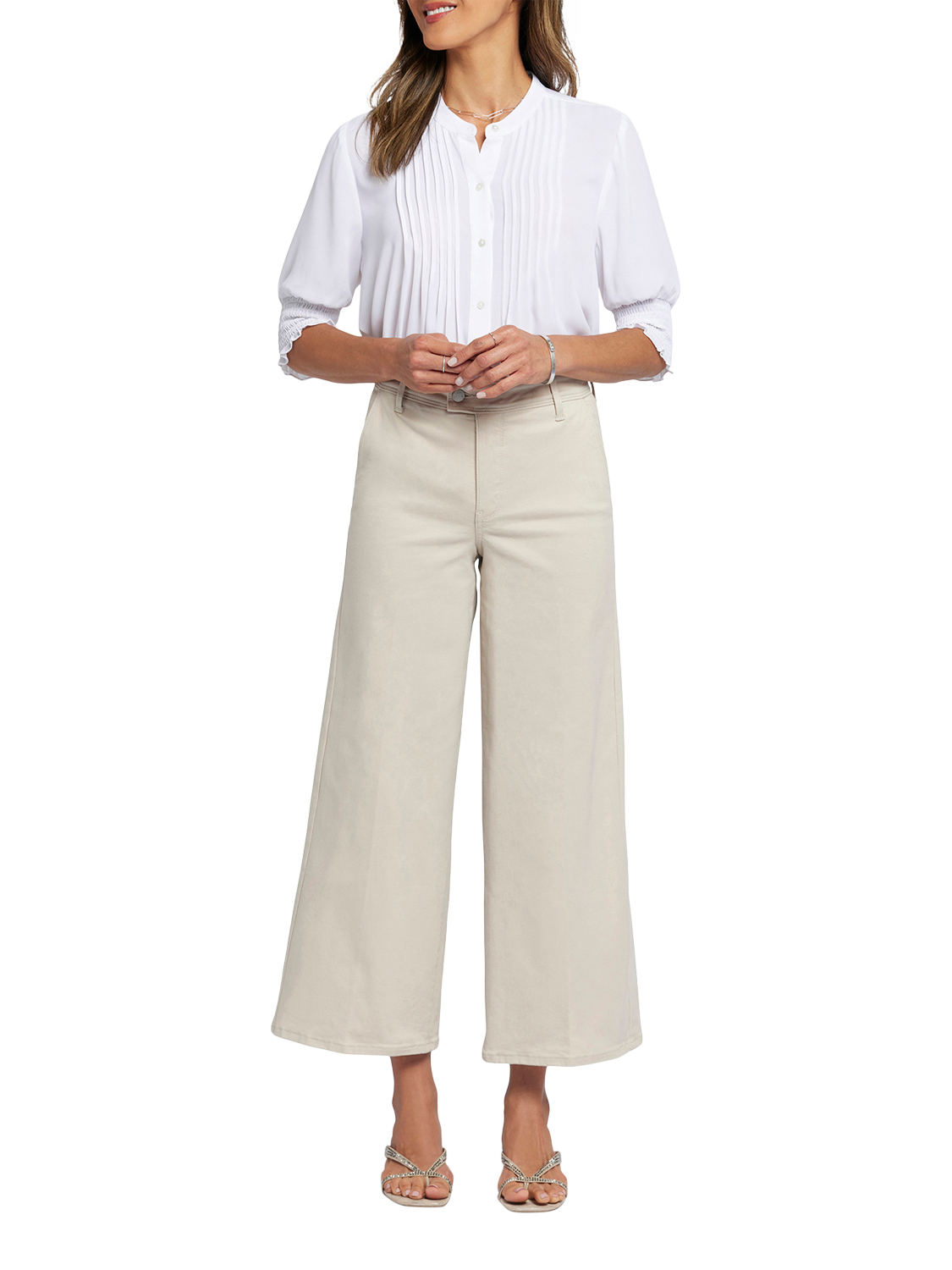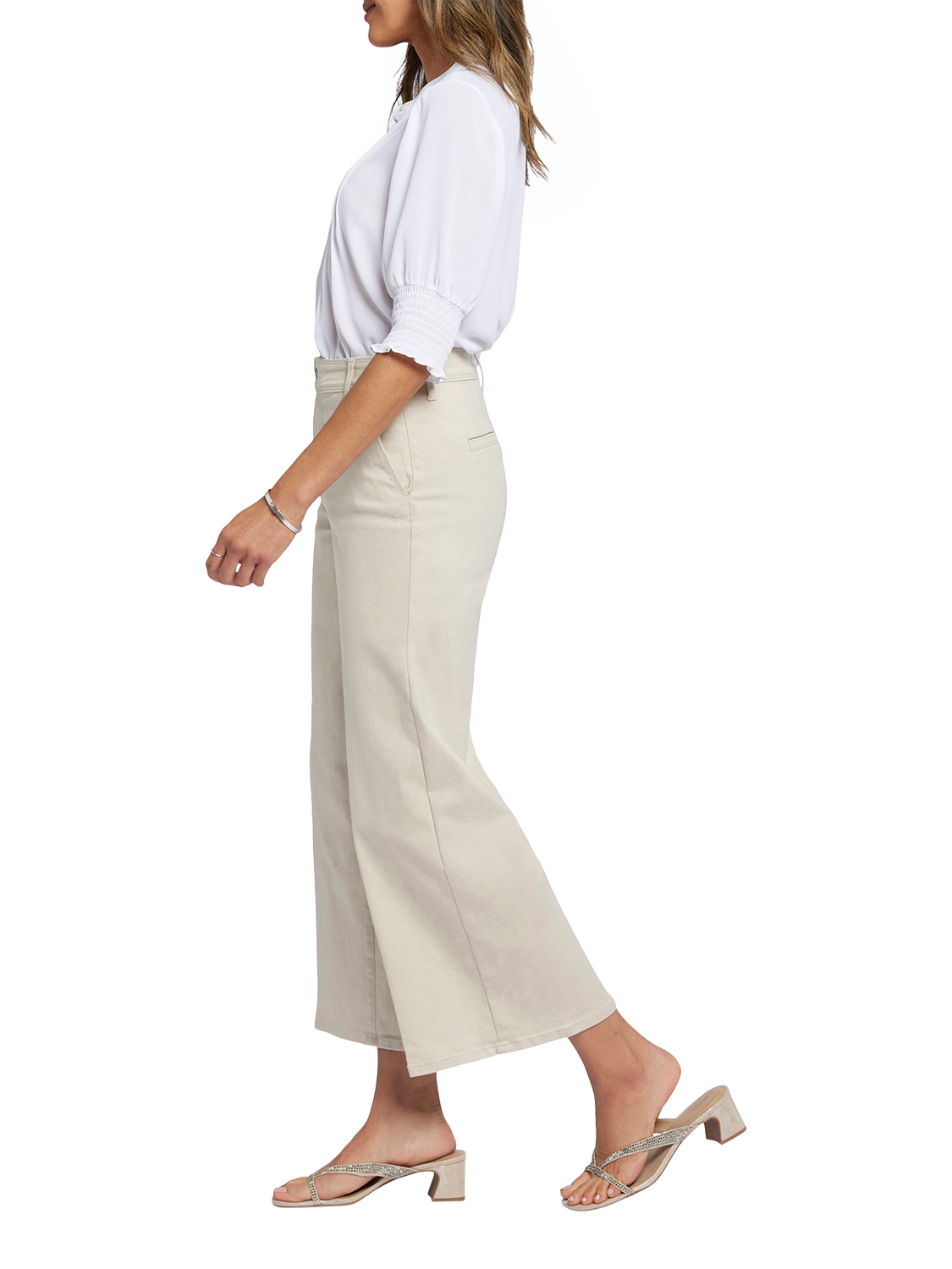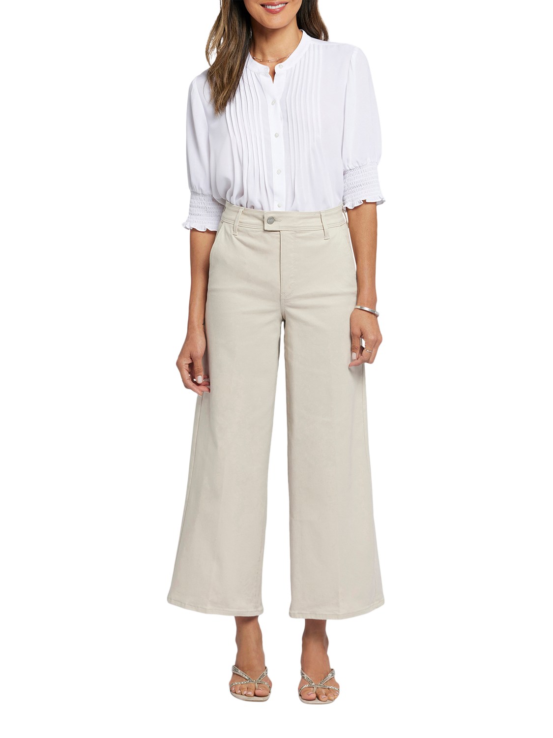 With their dramatic wide legs and flattering high rise, the Mona Wide Leg Trouser Ankle Jeans with High Rise by NYDJ are everything you need in a casual pant. Finished with front slash pockets, back welt pockets, belt loops and a zip fly with button-tab waist.