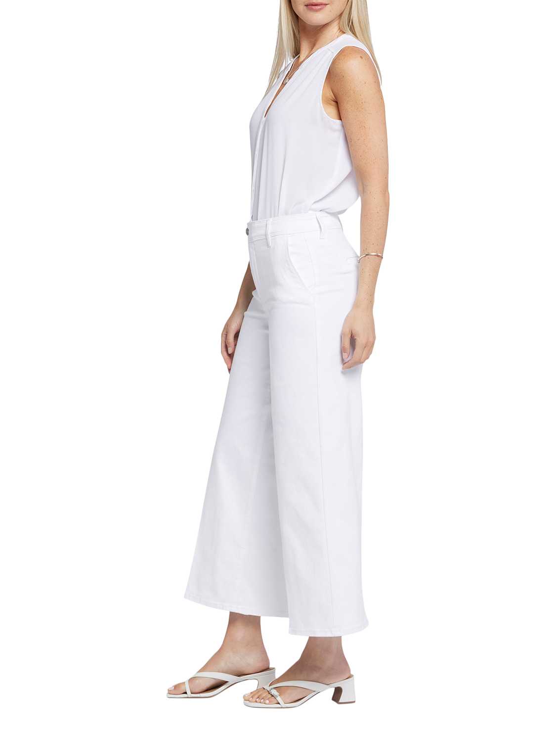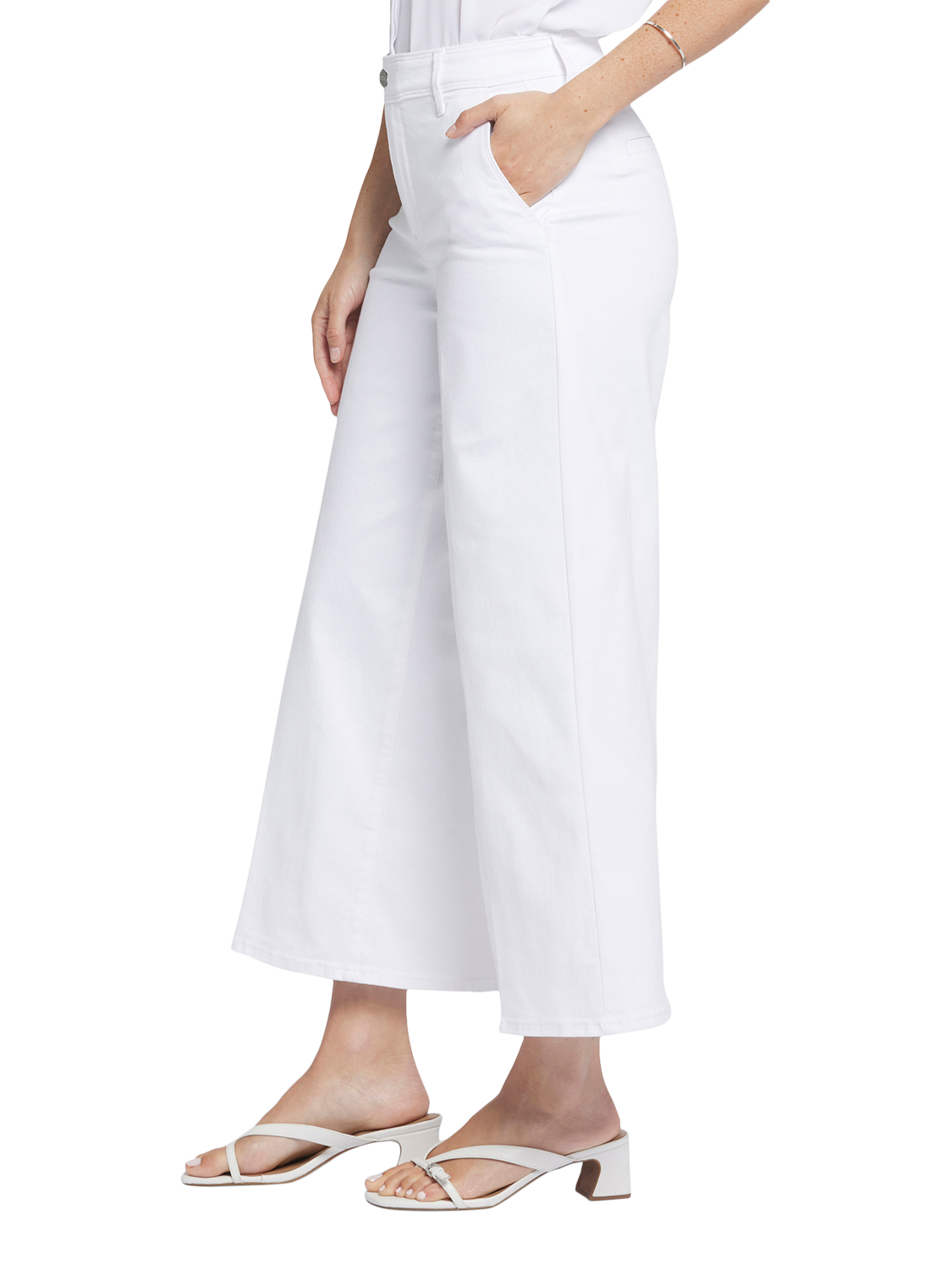 With their dramatic wide legs and flattering high rise, the Mona Wide Leg Trouser Ankle Jeans with High Rise by NYDJ are everything you need in a casual pant. Finished with front slash pockets, back welt pockets, belt loops and a zip fly with button-tab waist.