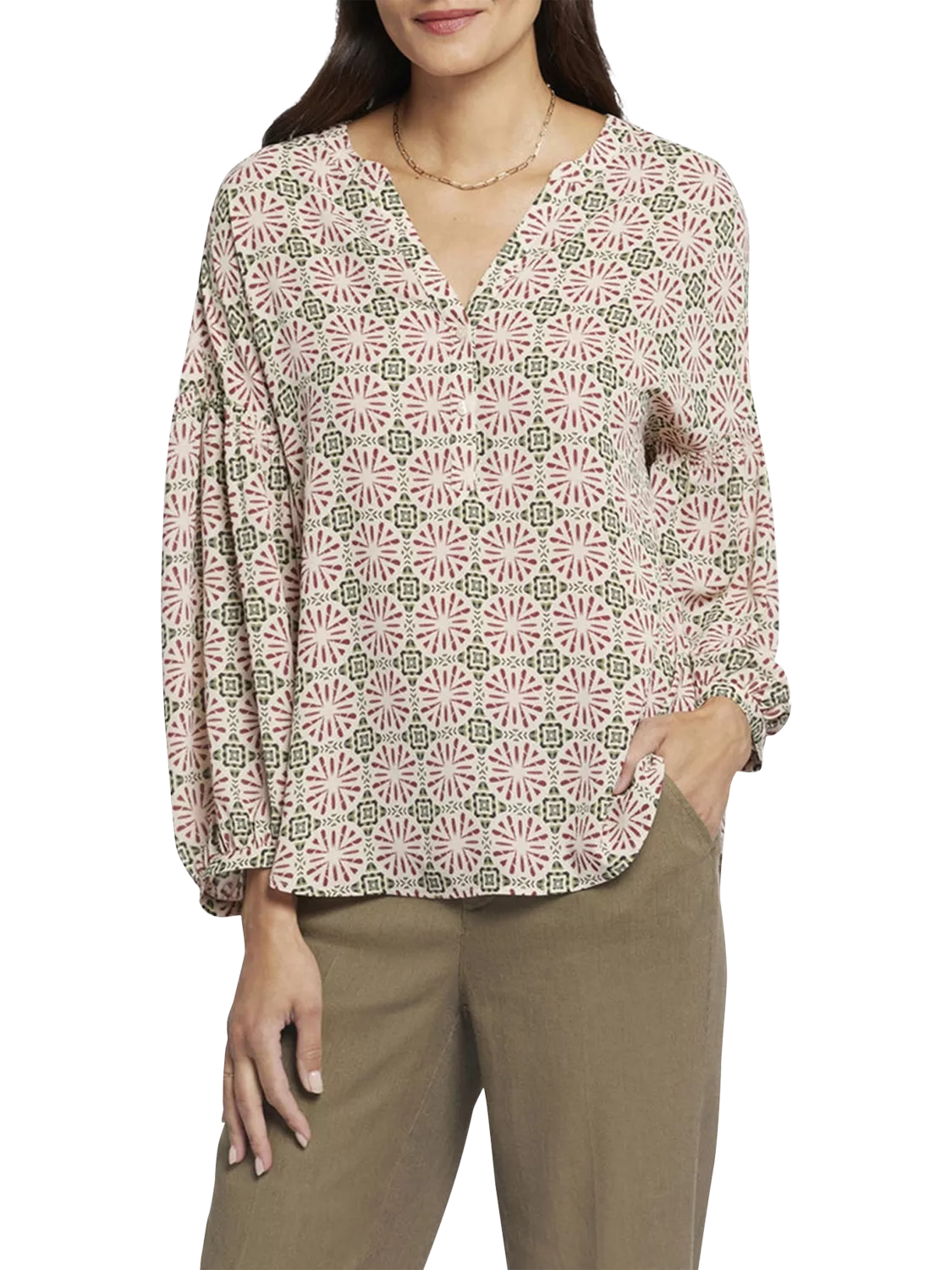 Pretty meets polished in the Paulina Peasant Blouse by NYDJ. The easy silhouette pairs perfectly with your favourite denim, while dropped, gathered sleeves offer effortless, feminine style. It's accented with soft gathers at the back and finished with button front closures.