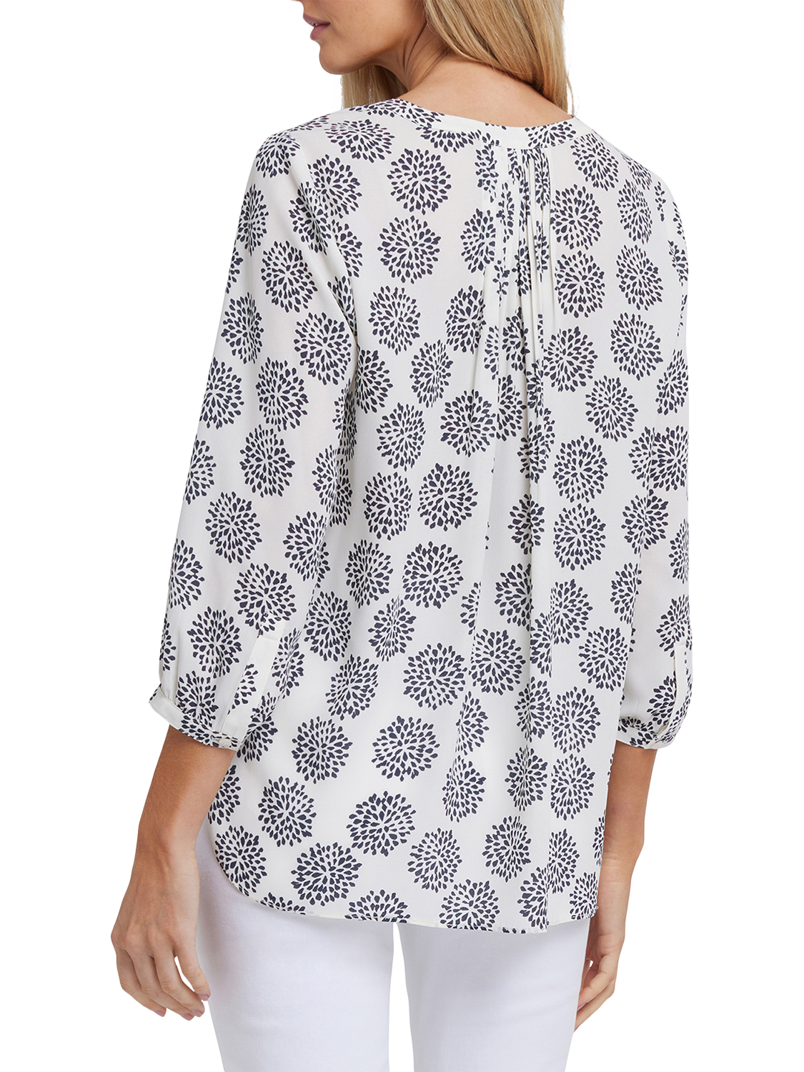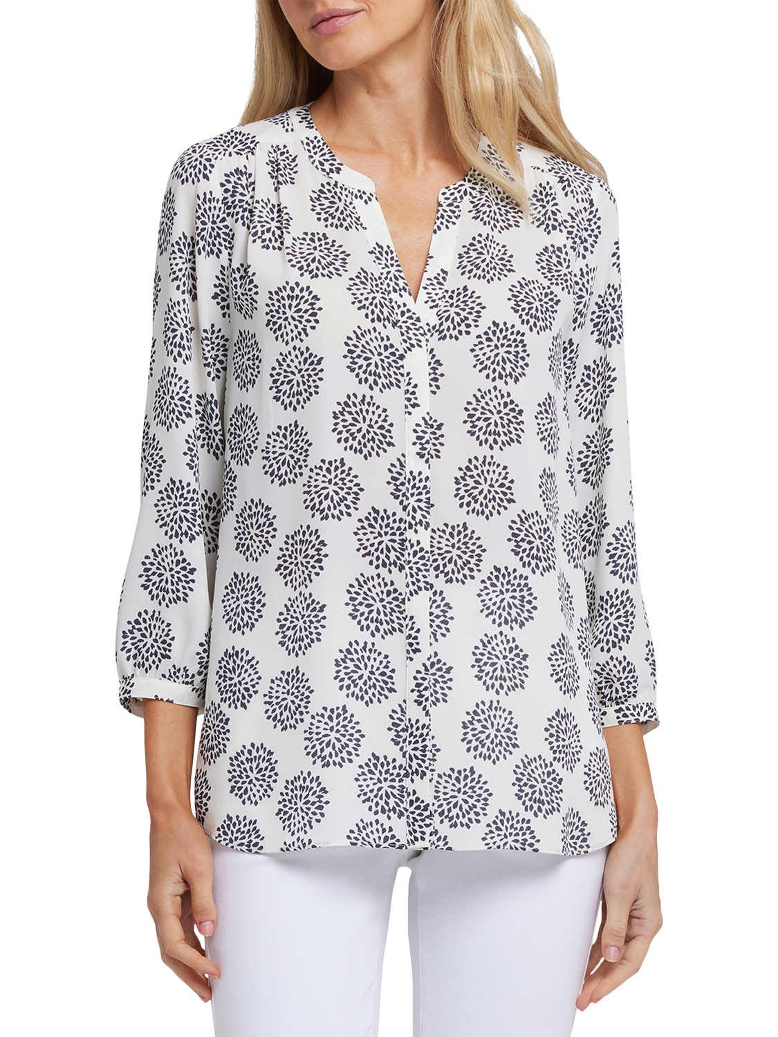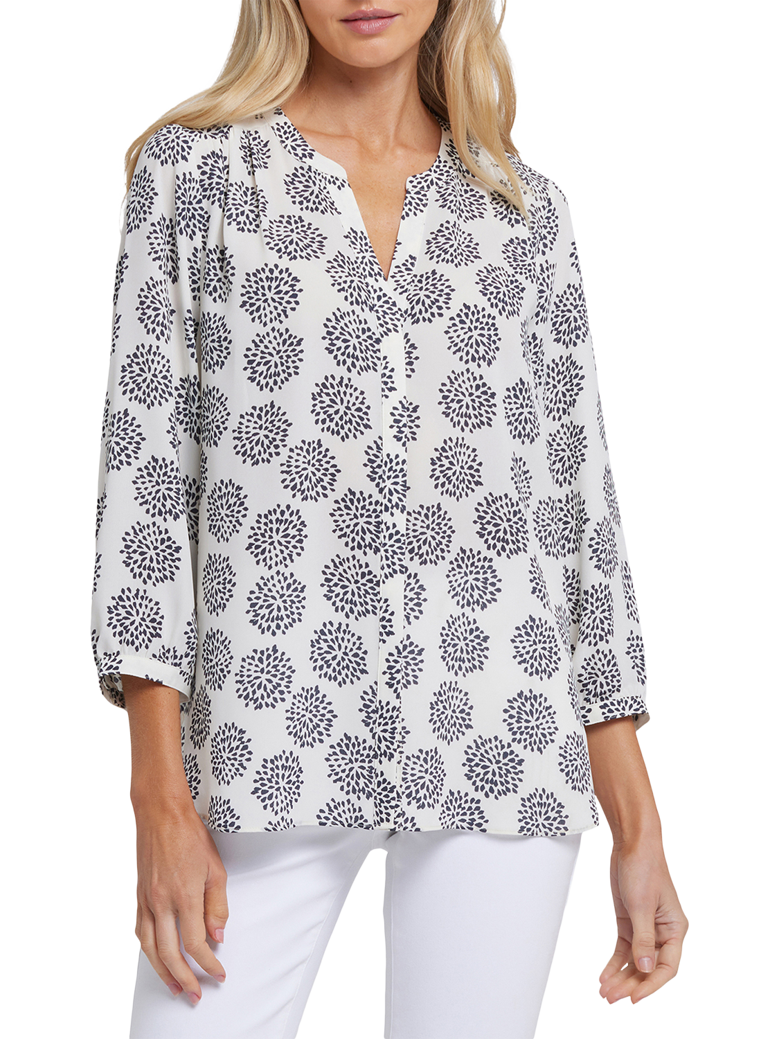 NYDJ's Pintuck Blouse boasts a billowy three-quarter-sleeved silhouette that's perfect when paired with denim styles. Pleating at the back yoke creates a sophisticated yet easy drape. Split round neckline with covered full front placket and button closures.