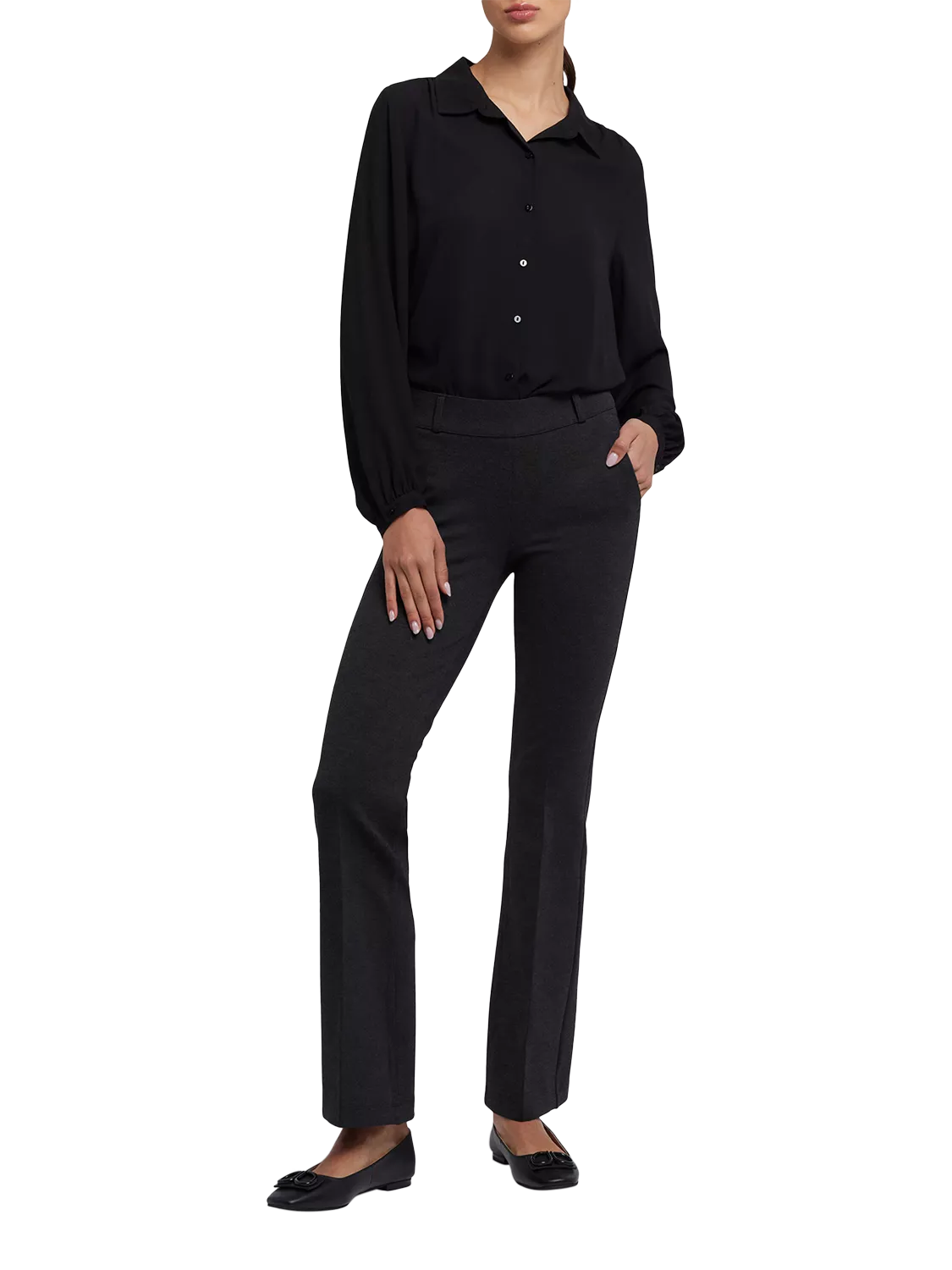 Look and feel your best from morning to moonlight in the pull-on flared trousers by NYDJ. These trousers are made of high-performance, yet super comfortable, compression Ponte that sculpts every curve. Belt loops, back darts, faux front slash pockets and faux back welt pockets give them a sharp, polished finish, while a pull-on waistband enhances their ease of wear.