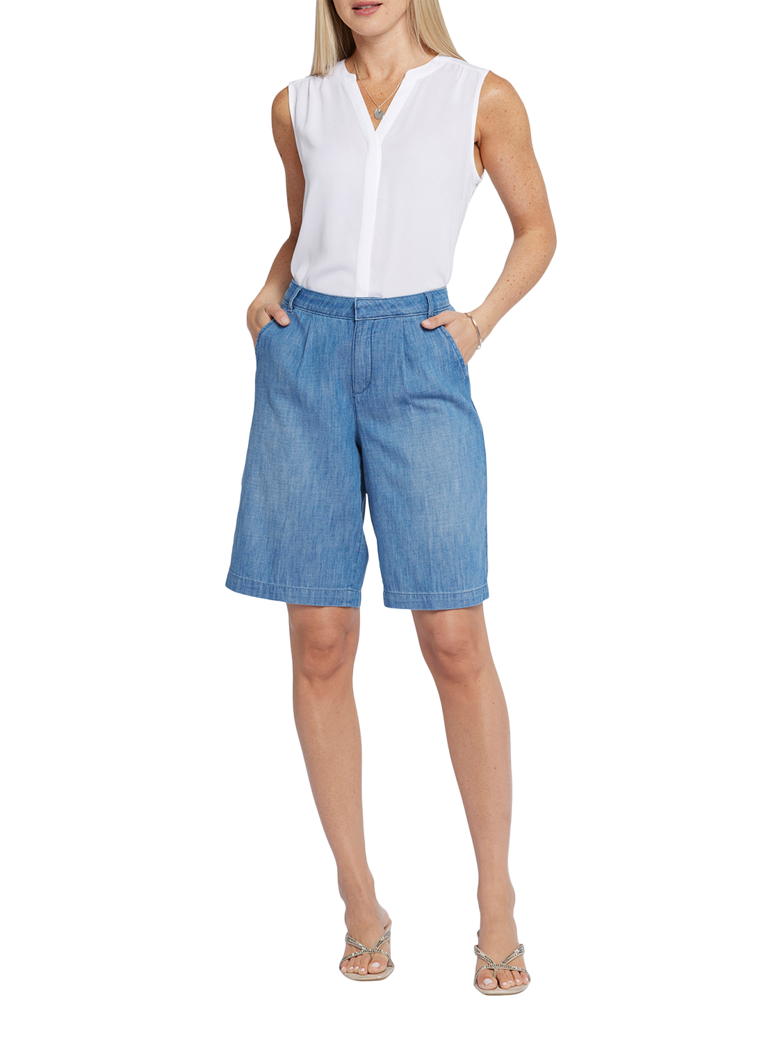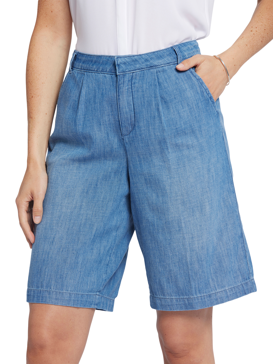 Look and feel good from day to night in the Relaxed Bermuda Denim Shorts by NYDJ. Soft lightweight denim provides a comfortable, breezy feel. This classic warm-weather style features four-pocket styling and a zip fly with button closure.