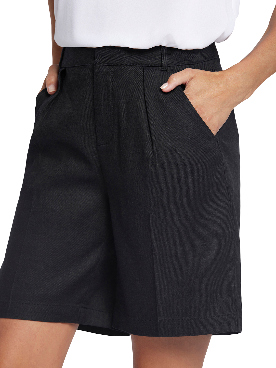 Experience the ultimate in comfort and style with NYDJ's Relaxed Shorts in Stretch Linen. This breezy short sits elegantly on the waistline, featuring a flattering, nipped-in look with the help of darts. It's finished with front slash pockets, back welt pockets and a zip fly with button closure.