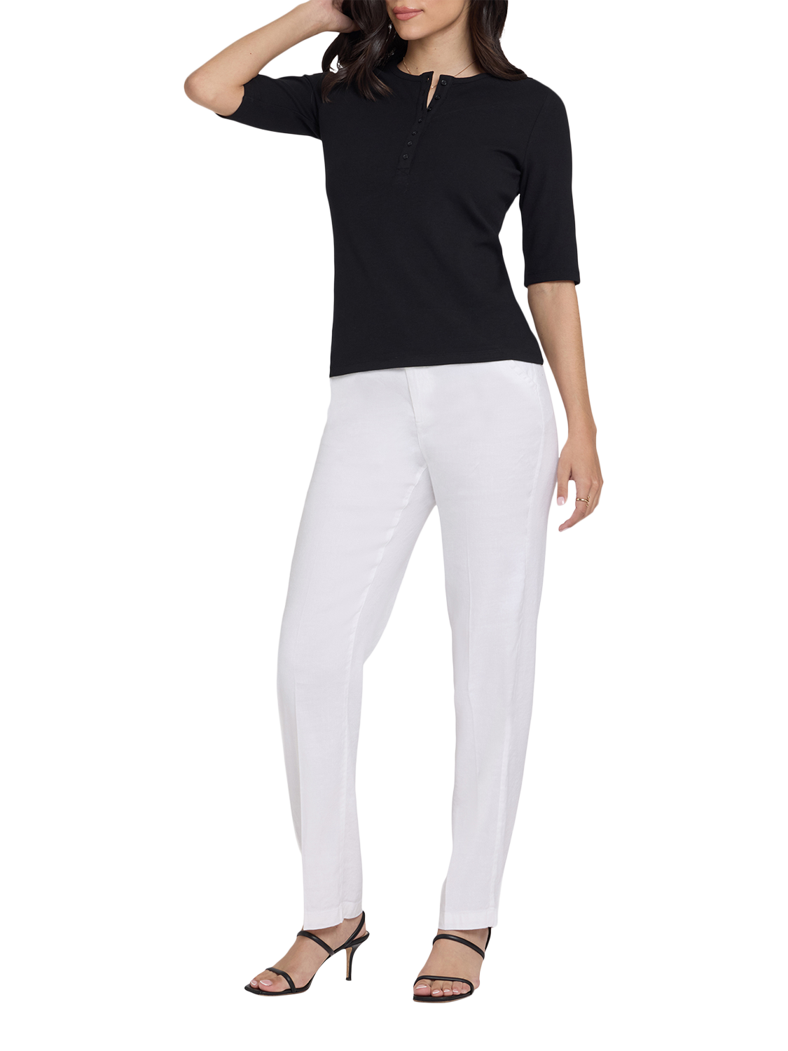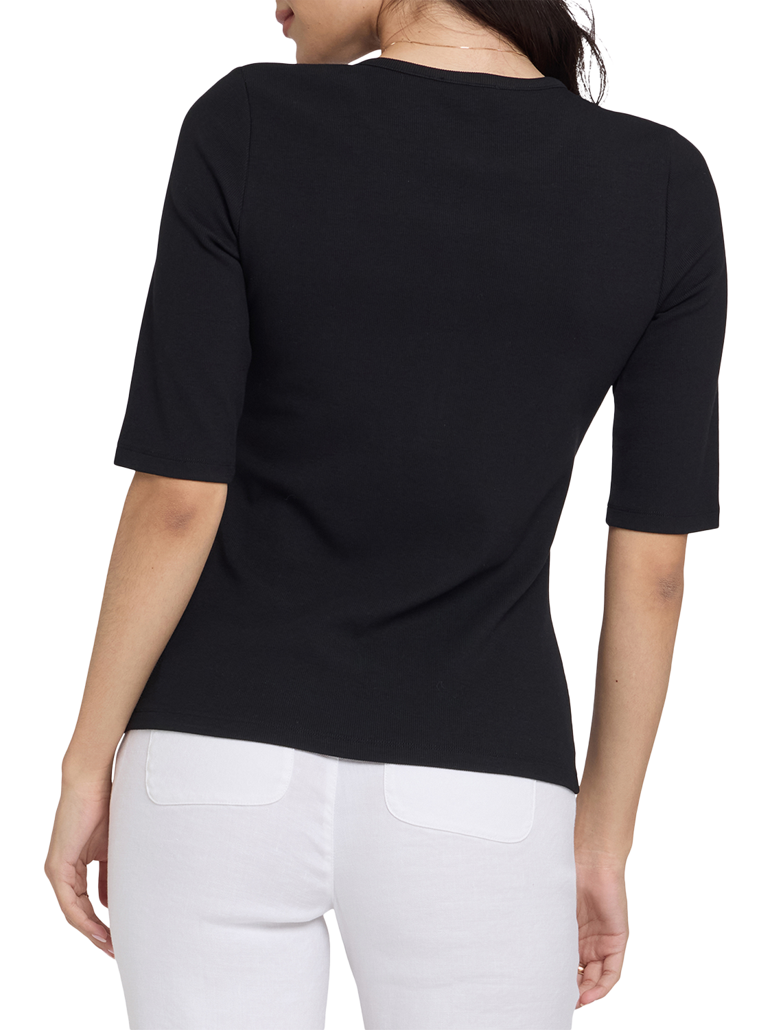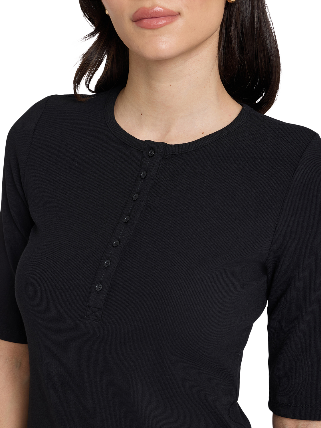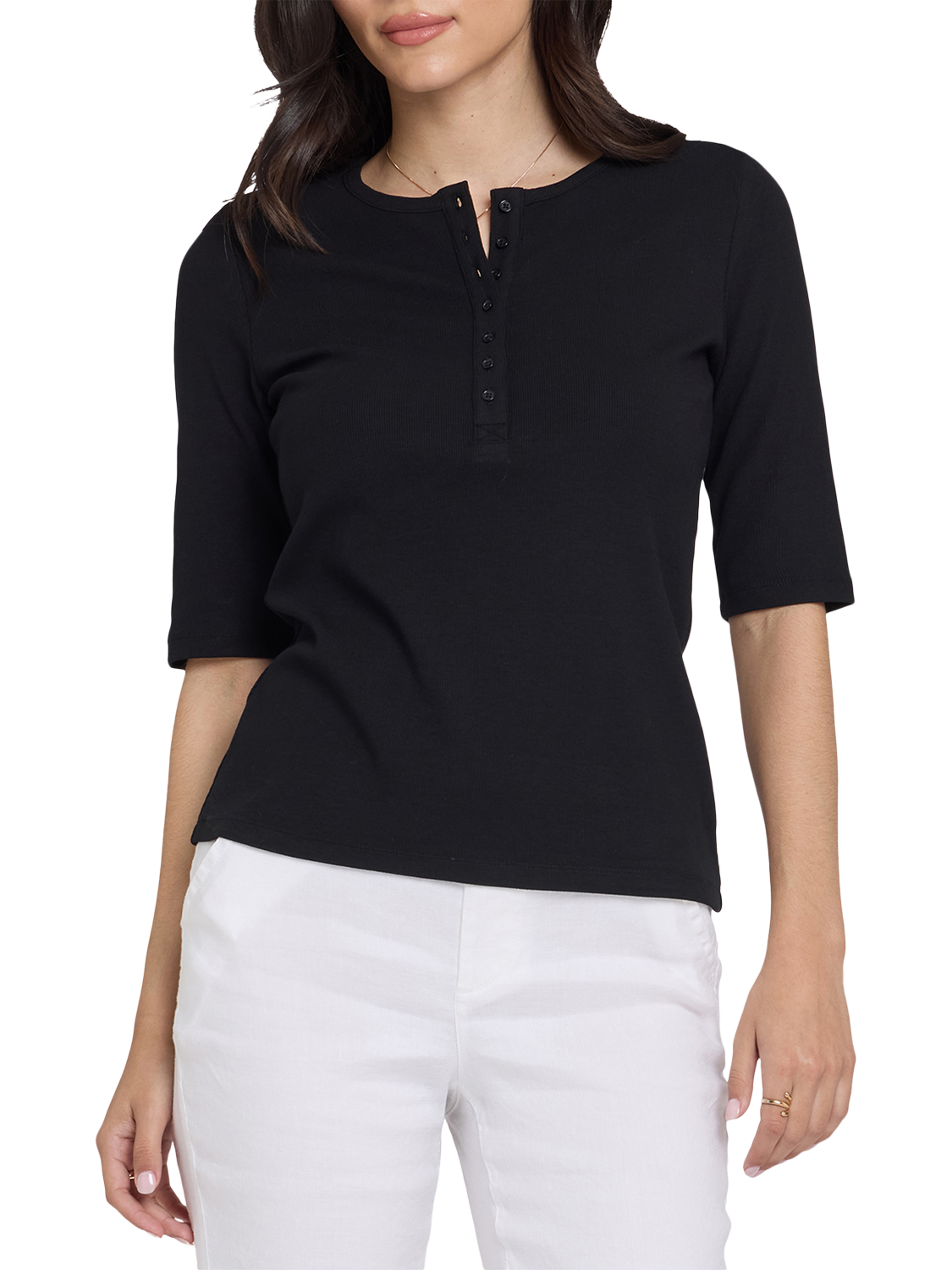 NYDJRibbed Elbow Sleeved Henley, Black