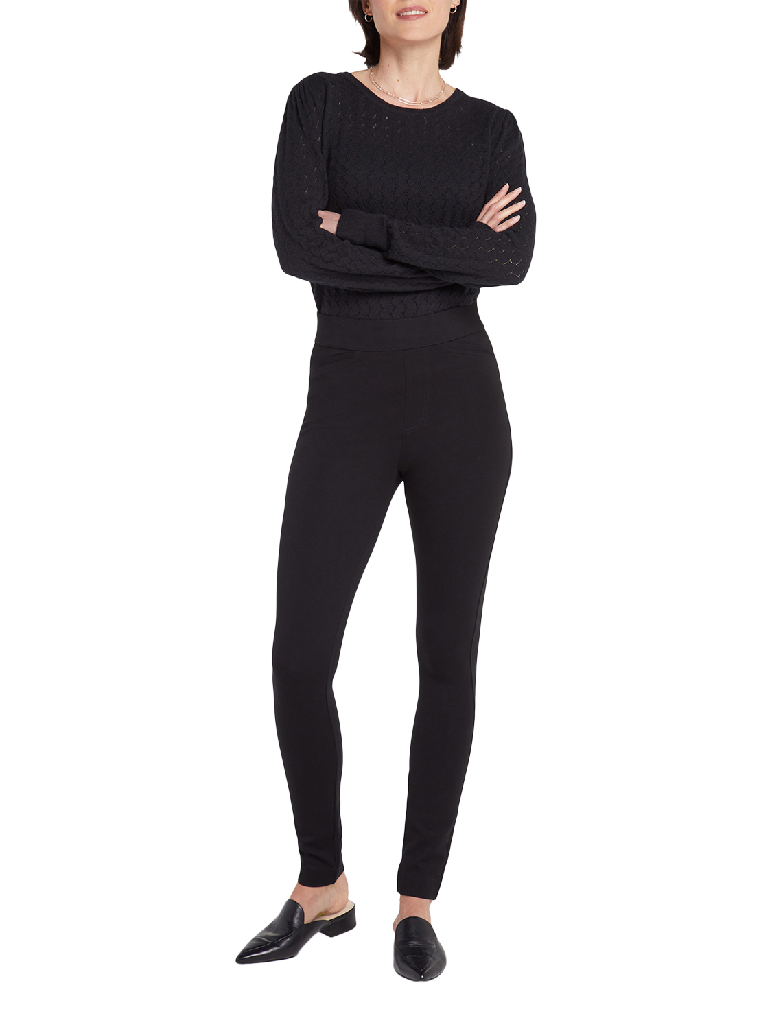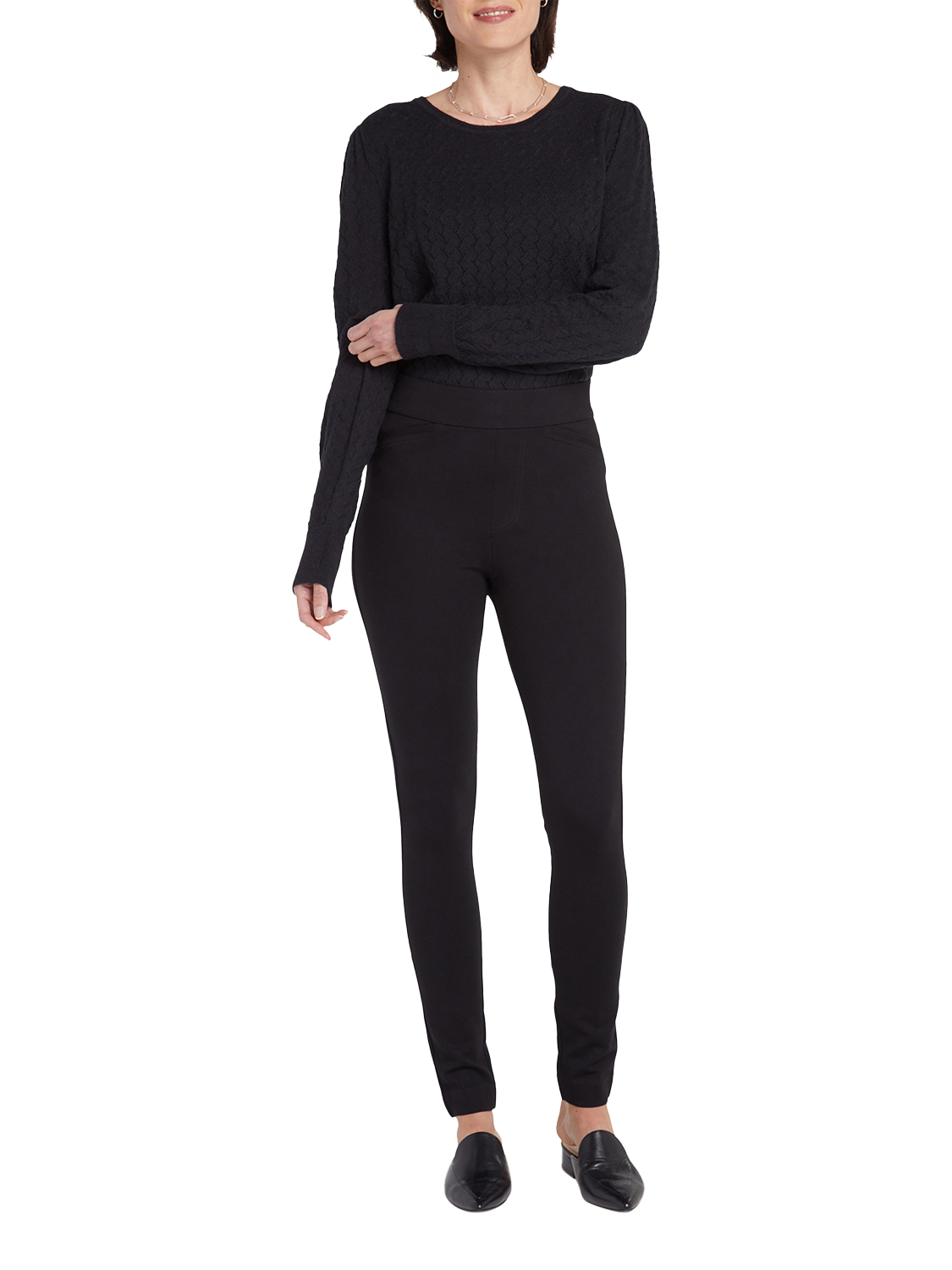 These incredibly sleek and stretchy bottoms feature advanced compression ponte that sculpts and supports. Designed to make curves look amazing while delivering around-the-clock comfort, they have a pull-on waistband, flattering back seaming and back slits for ease of movement. A faux fly, faux angled front welt pockets and faux back welt pockets add a subtle tailored touch that keeps the styling appropriate from workday to after hours to weekend. Like our denim, these bottoms include Lift Tuck® Technology, which uses a proprietary slimming panel with a patented criss-cross design for a smooth-in-front silhouette and extra lift in back. These legging pants are part of Sculpt-Her™, a collection of compression-contouring essentials with an unparalleled, cutting-edge fit.