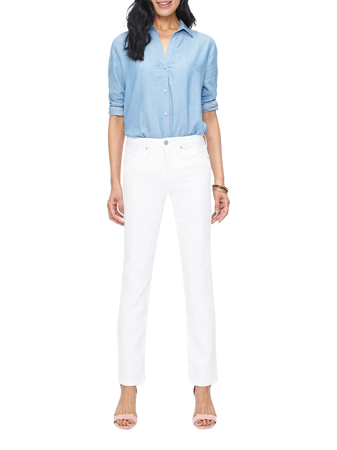 The Sheri slim leg from NYDJ falls somewhere between a skinny and a true straight for a modern and versatile fit. Prepare yourself for more than a few admiring stares wearing these expertly cut jeans that are always in season.
