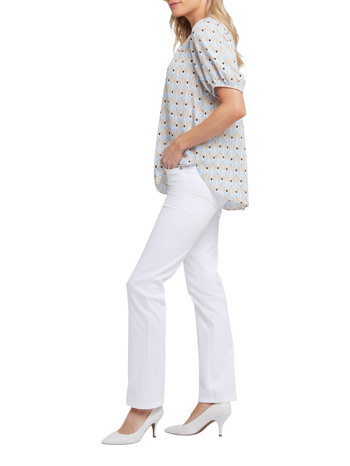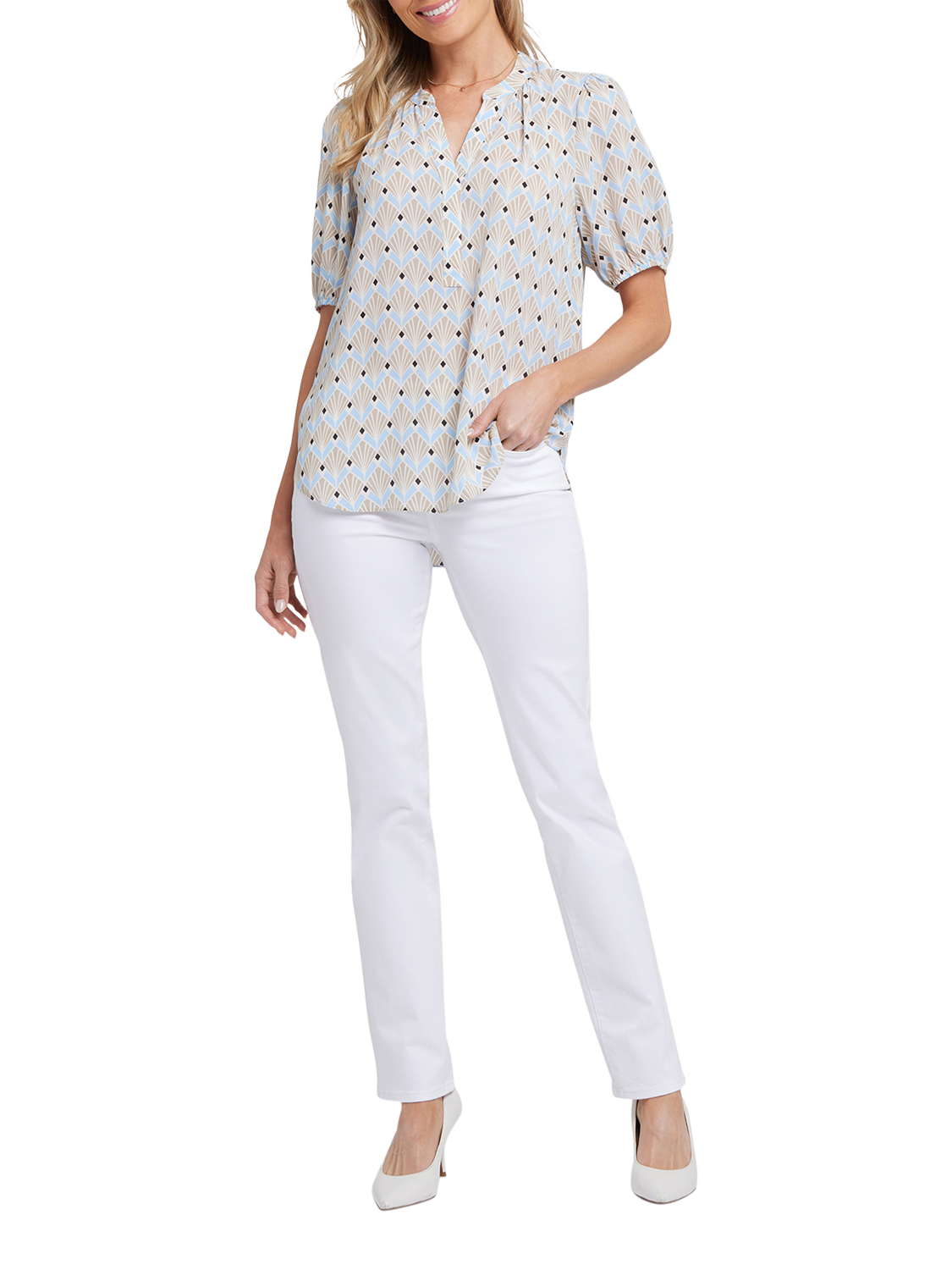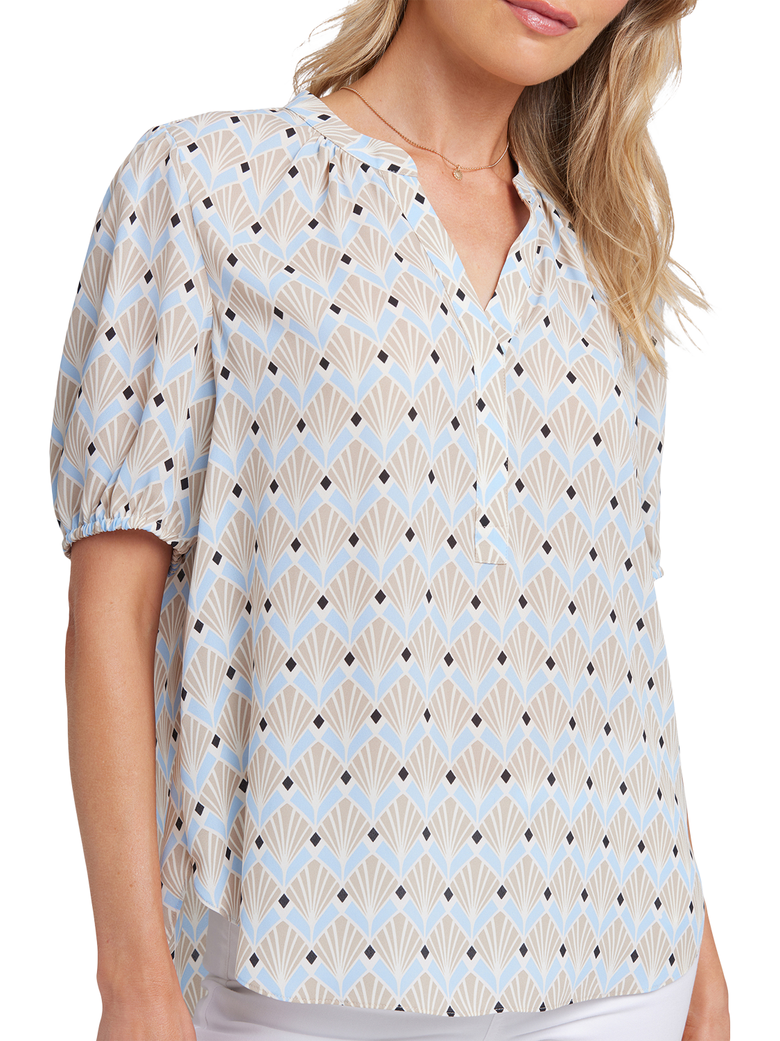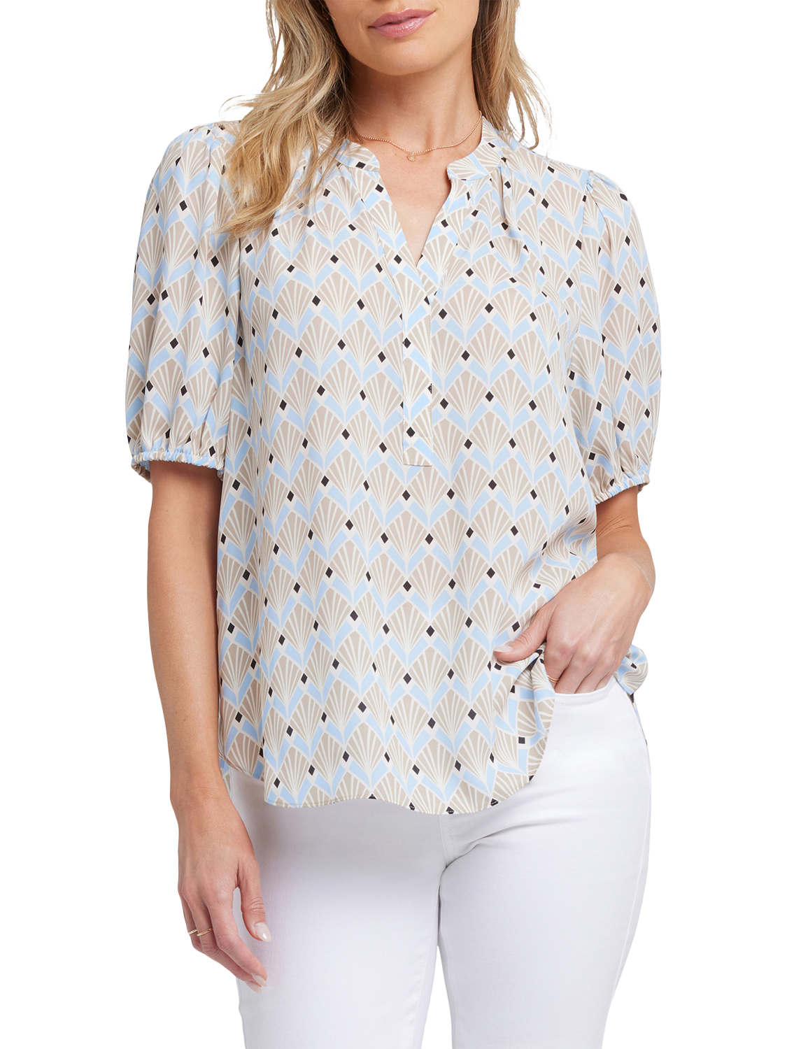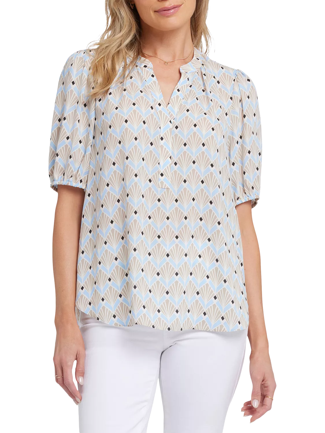 NYDJShort Puff Sleeve Popover Blouse, Cabo Punta