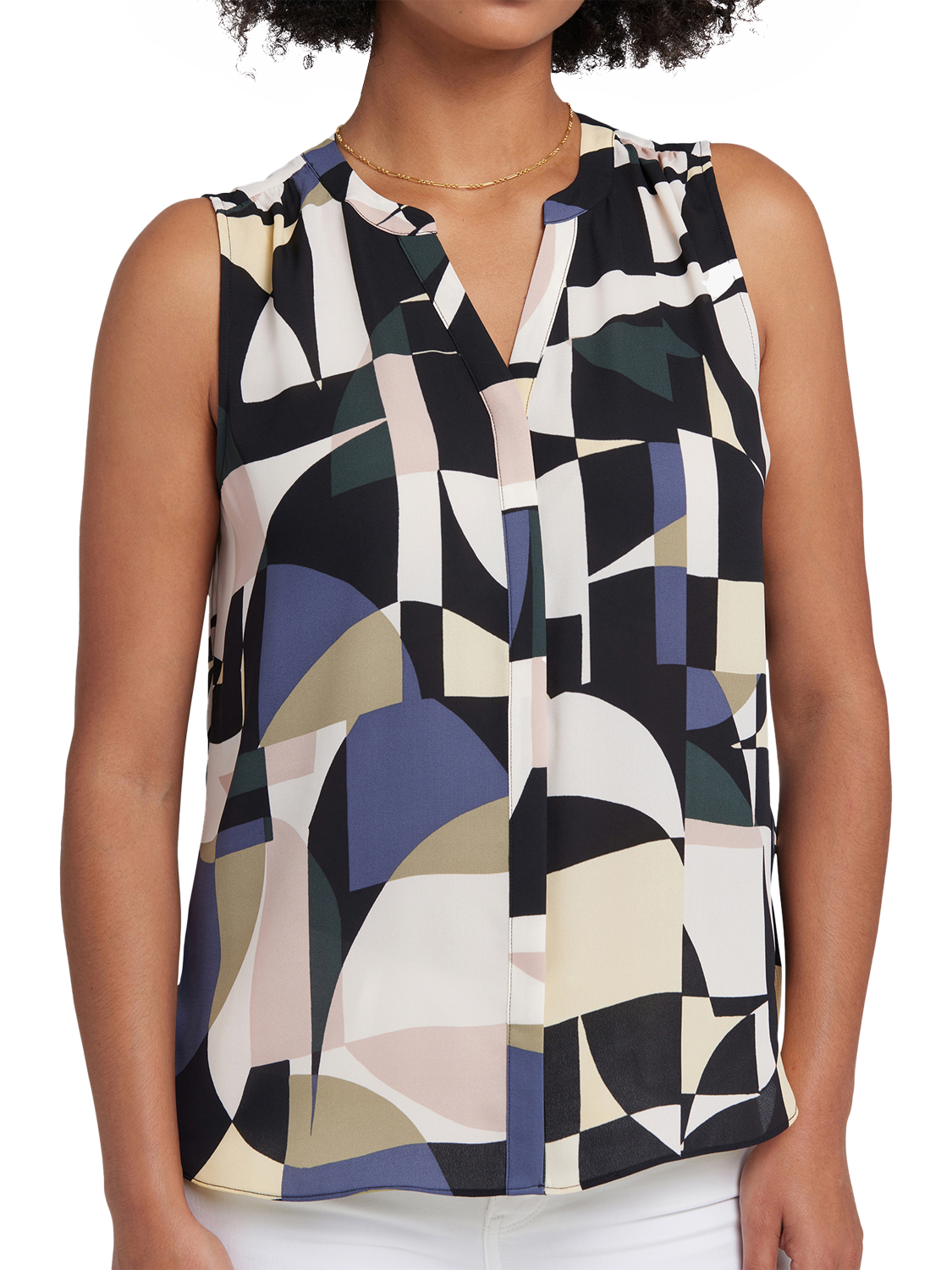 No wardrobe is complete without a flattering sleeveless blouse. NYDJ's Sleeveless Pintuck Blouse checks all the boxes it's relaxed, it's refined, and it goes with everything. A mandarin collar and inverted pleat in the back give this style a polished look for any occasion.