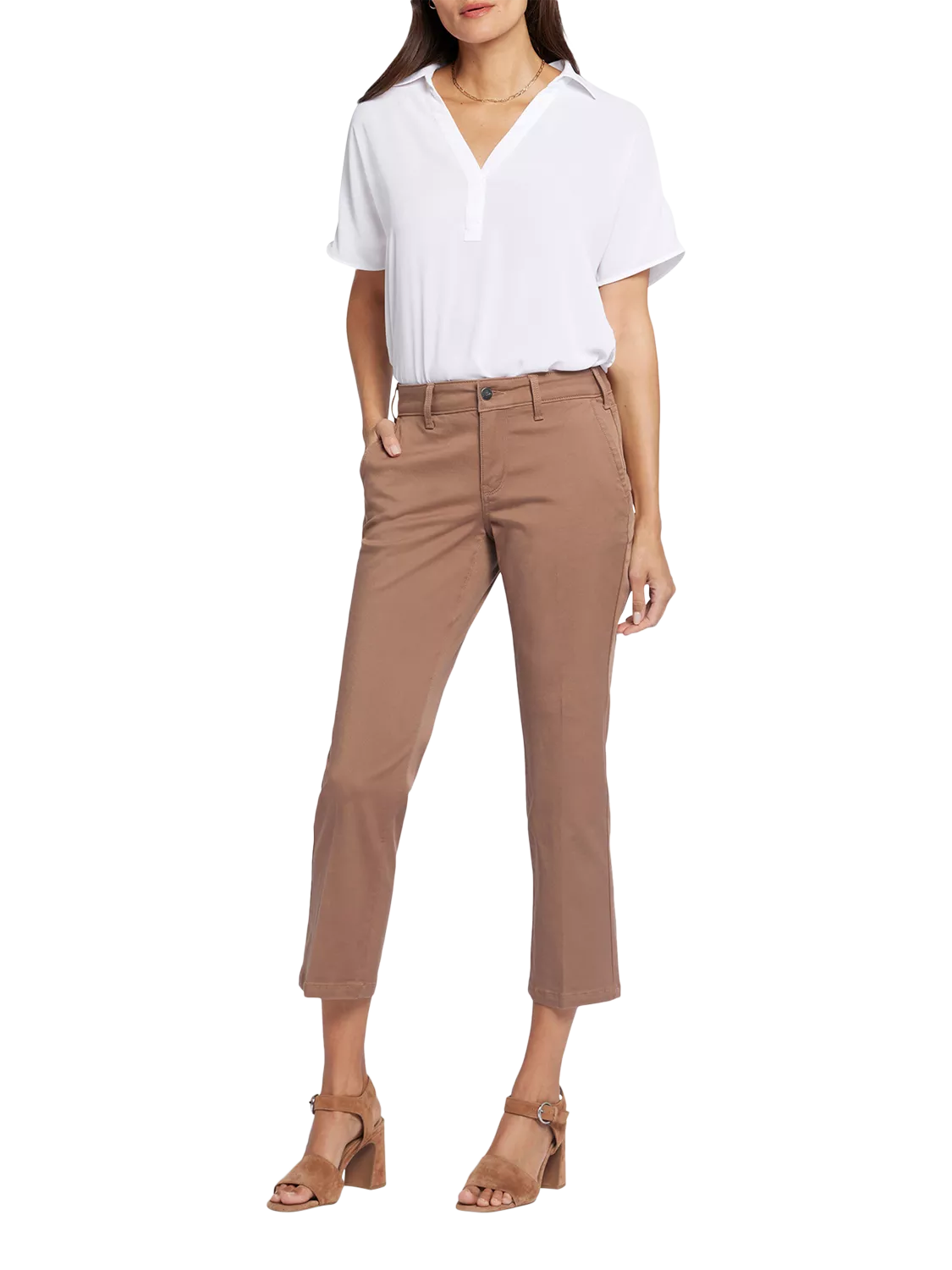 Classic and versatile, NYDJ's Straight Ankle Pants in Stretch Twill are sure to become a favourite. These pants feature front and back creases with a slimming, straight-leg fit. Finished with front slash pockets, back patch pockets and a zip fly with button closure.