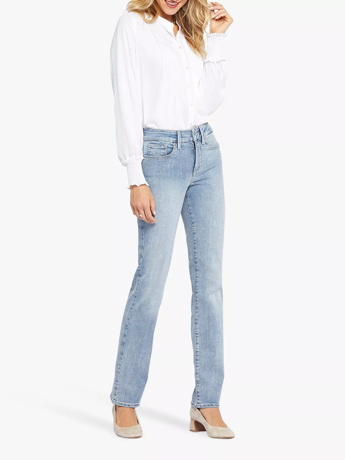 The easy, figure-elongating construction of the NYDJ Marilyn Straight Jeans in Tall pairs well with everything, thanks to a flattering waist and a versatile straight-leg fit. Lift Tuck® Technology uses a proprietary slimming panel with a patented criss-cross design to shape and support your curves for an always-sleek silhouette. Finished with classic five-pocket styling, zip fly and button closure.