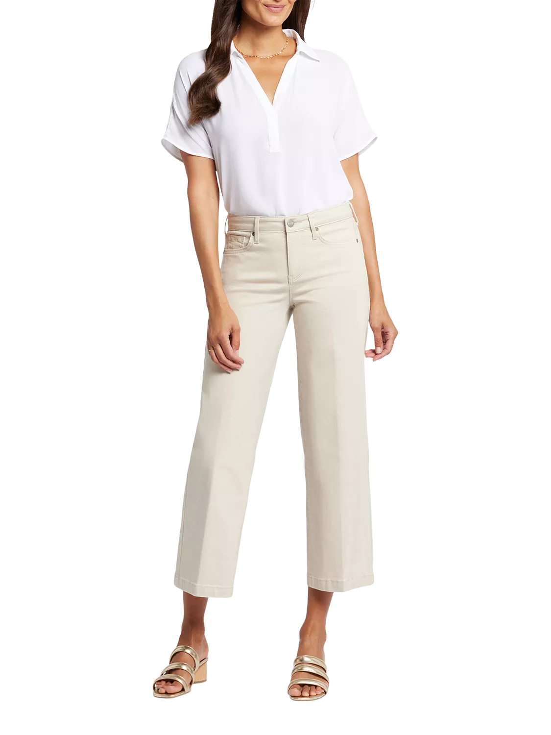 The Teresa Wide Leg Ankle Jeans by NYDJ have a lighthearted, on-trend silhouette that's fun to pair with heels and ankle boots. A wide leg opening adds drama, while a deep trouser hem gives this style a polished finish. Our Lift Tuck® Technology is made to help you keep your shape with a proprietary slimming panel with a patented criss-cross design that smooths and sculpts. Features five-pocket styling and a zip fly with button closure.