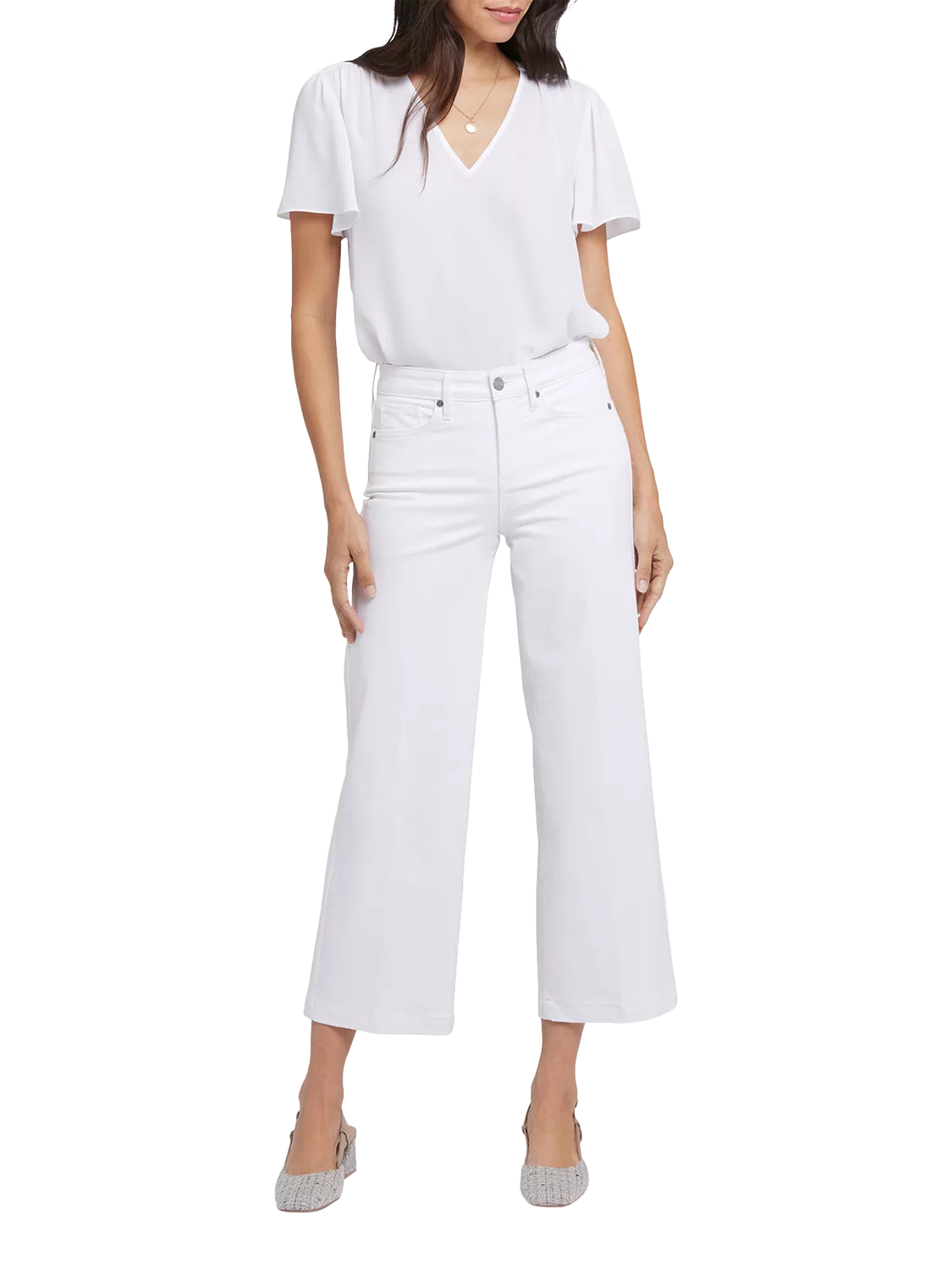 The Teresa Wide Leg Ankle Jeans by NYDJ have a lighthearted, on-trend silhouette that's fun to pair with heels and ankle boots. A wide leg opening adds drama, while a deep trouser hem gives this style a polished finish. Our Lift Tuck® Technology is made to help you keep your shape with a proprietary slimming panel with a patented criss-cross design that smooths and sculpts. Features five-pocket styling and a zip fly with button closure.