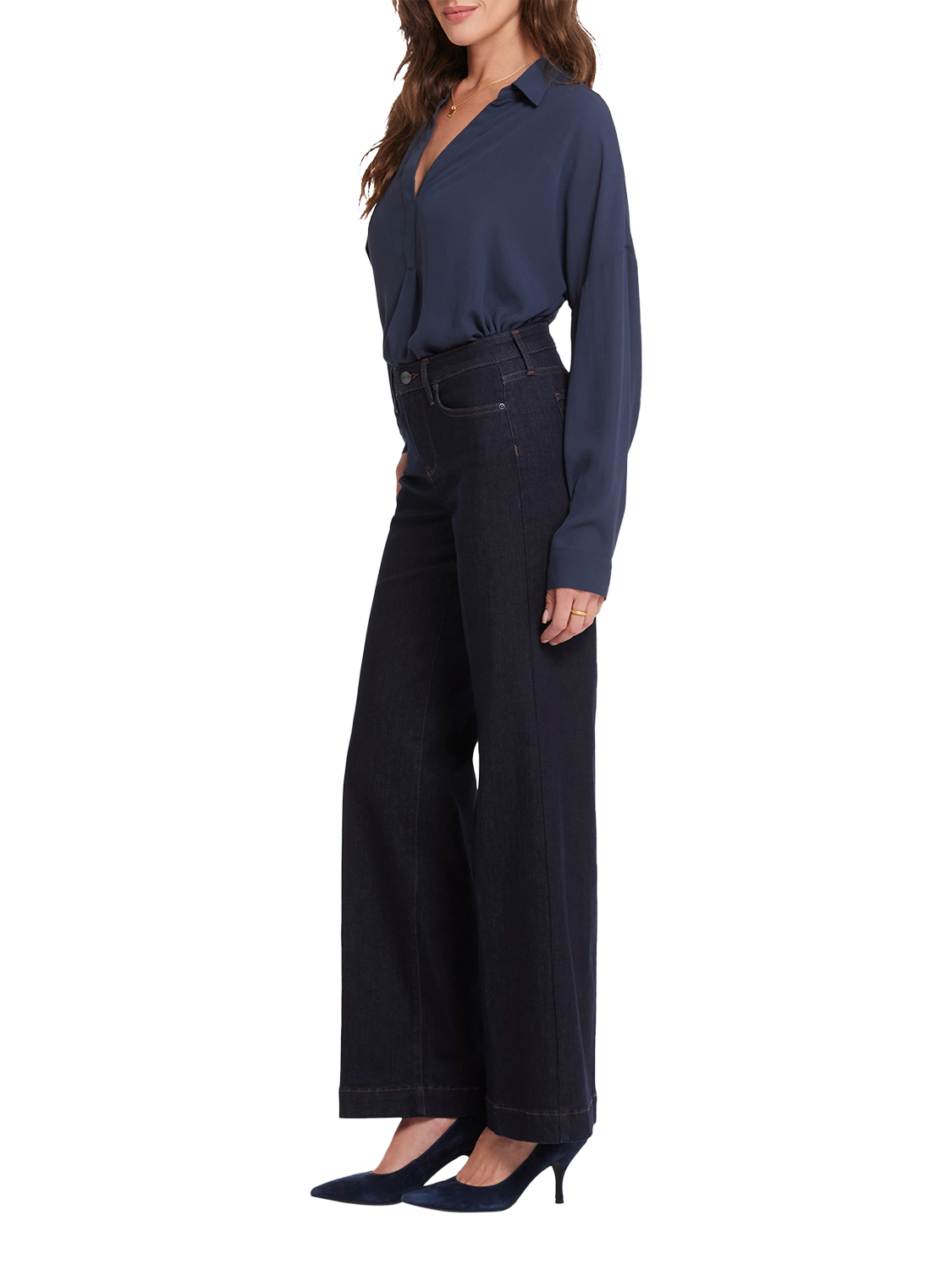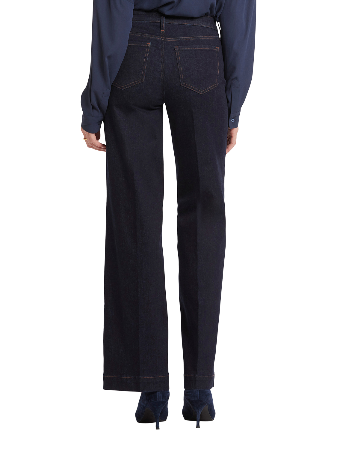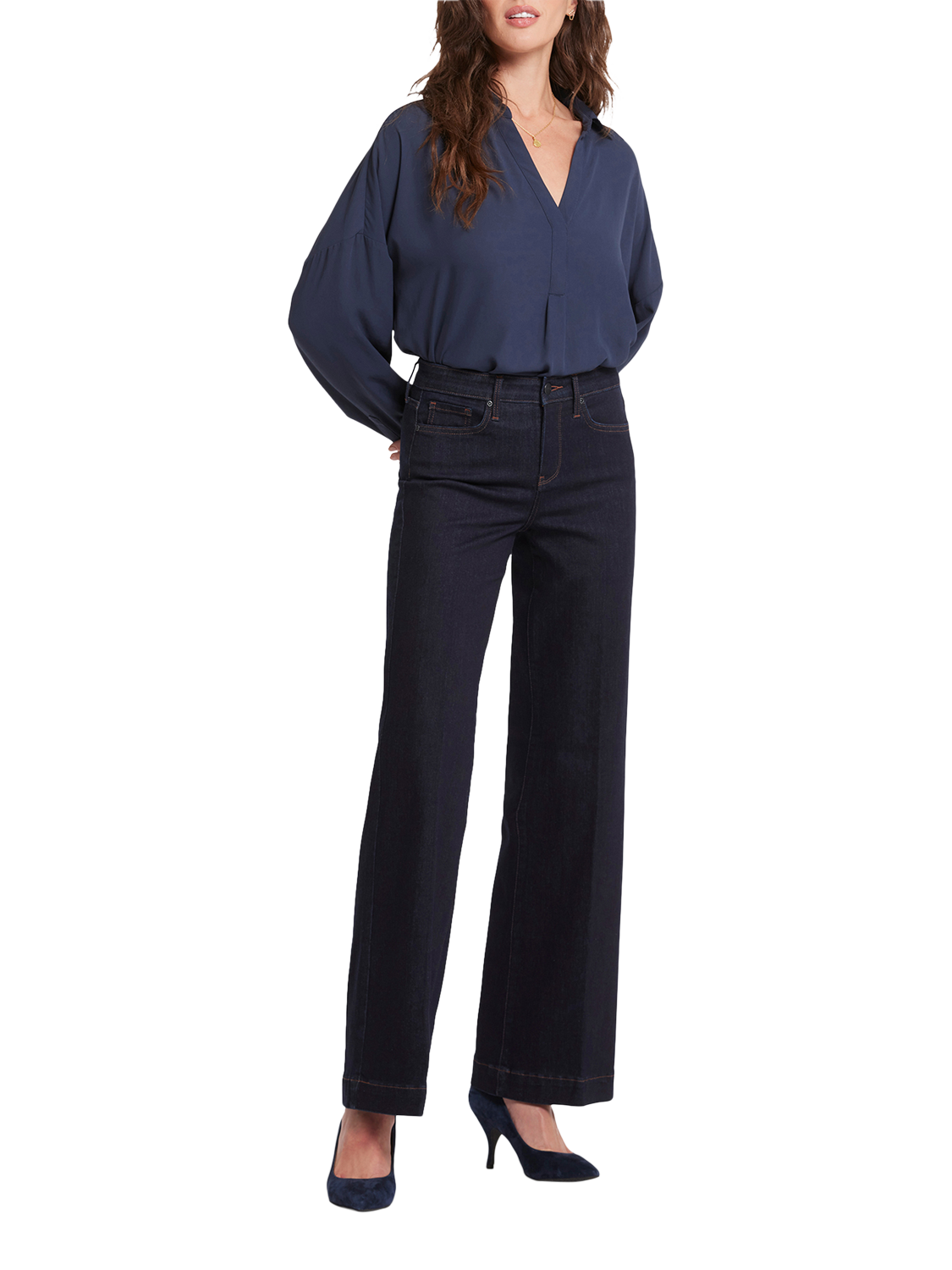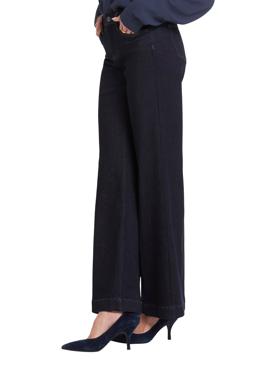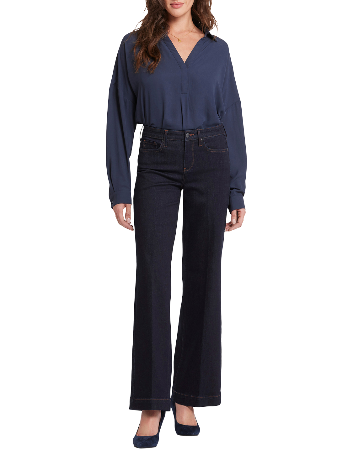The Teresa Wide Leg Jeans by NYDJ cinch your waist, enhancing your natural silhouette. Their wide legs add instant polish to everything you pair them. Our Lift Tuck® Technology is made to help you keep your shape, with a proprietary slimming panel with a patented criss-cross design that smooths and sculpts. Features five-pocket styling, a zip fly with button closure and deep trouser-style hems.