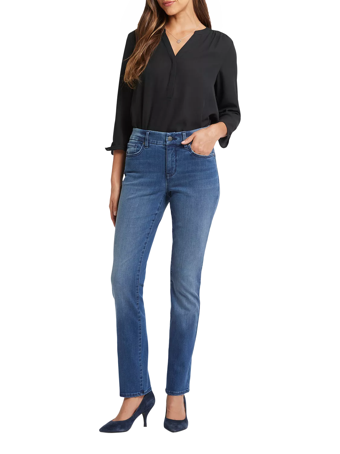 Designed to conform to you, NYDJ’s Waist-Match™ Sheri Slim Jeans have a magical satin elastic that lines the interior of the waistband and moulds to your waist for an extra-comfortable fit. Between a skinny and straight cut, they offer a classic, curve-hugging slim fit. Lift Tuck® Technology uses a proprietary slimming panel with a patented criss-cross design that shapes and supports you for an always-sleek silhouette. Features five-pocket styling, zip fly and button closure.