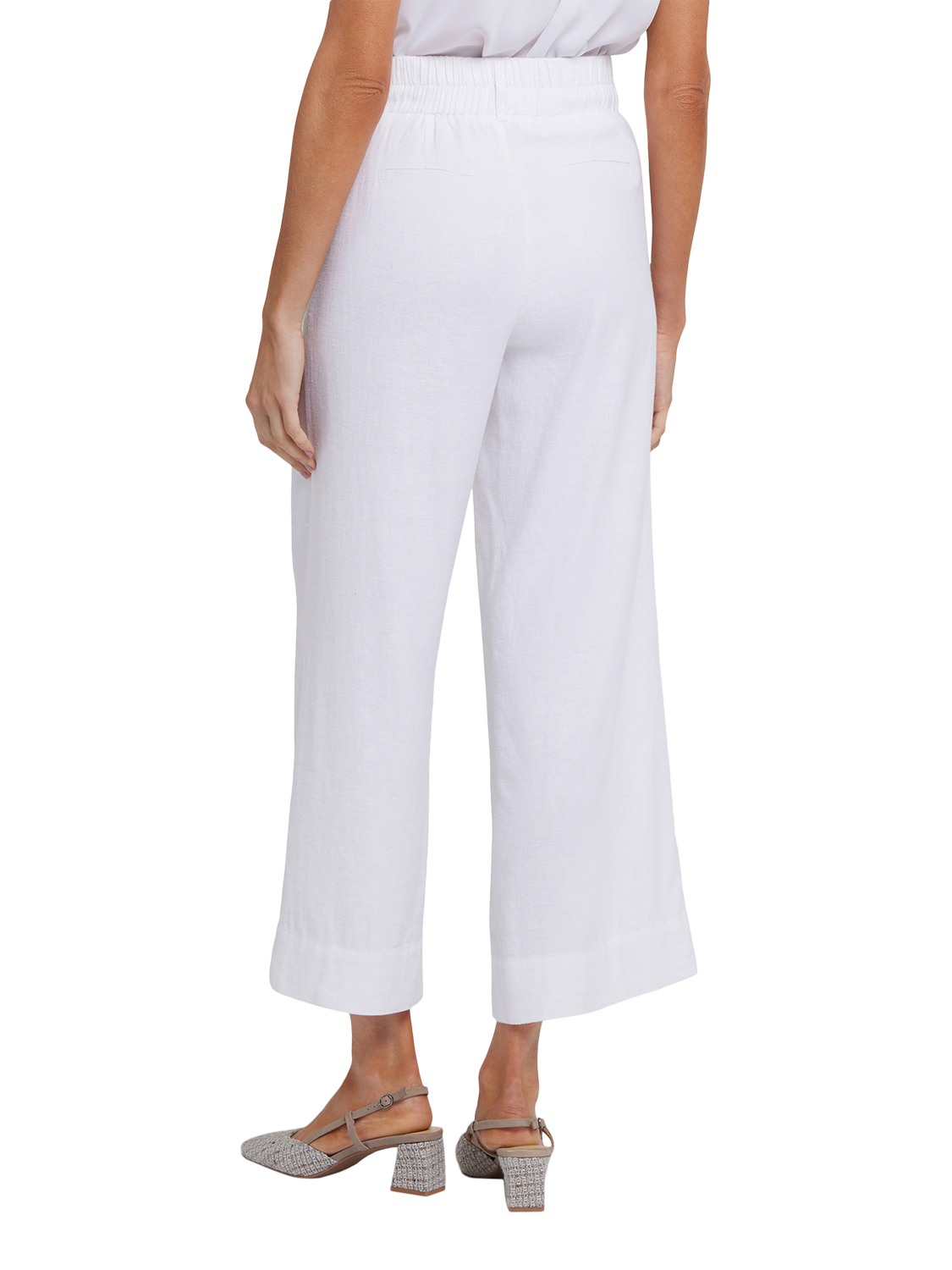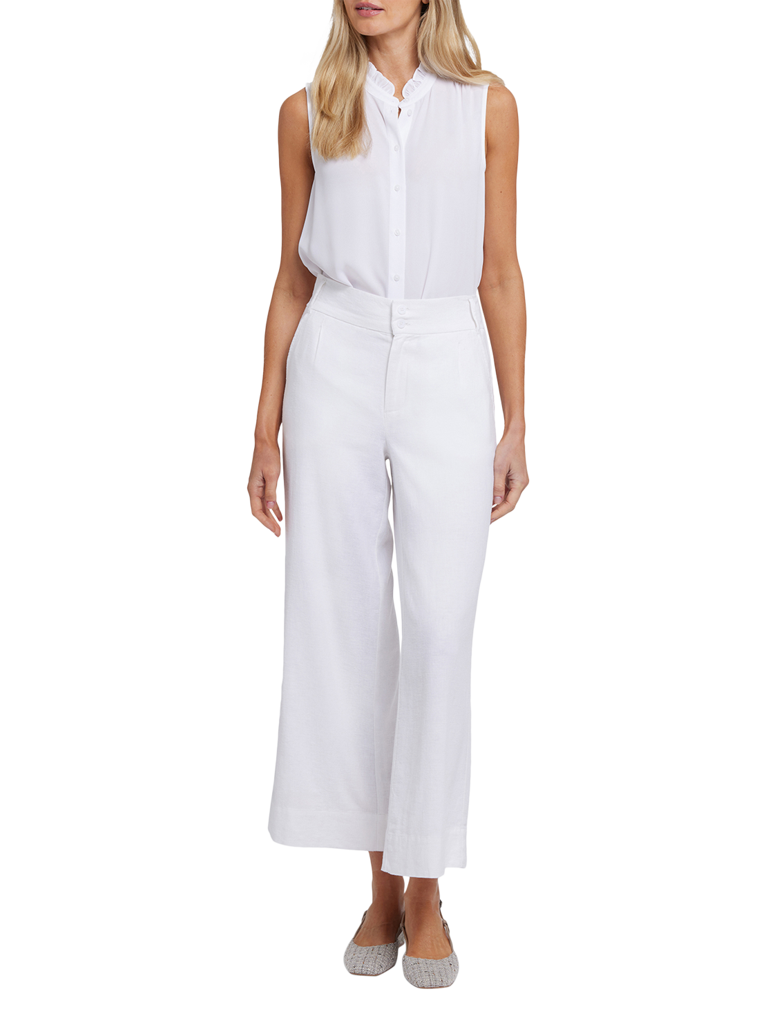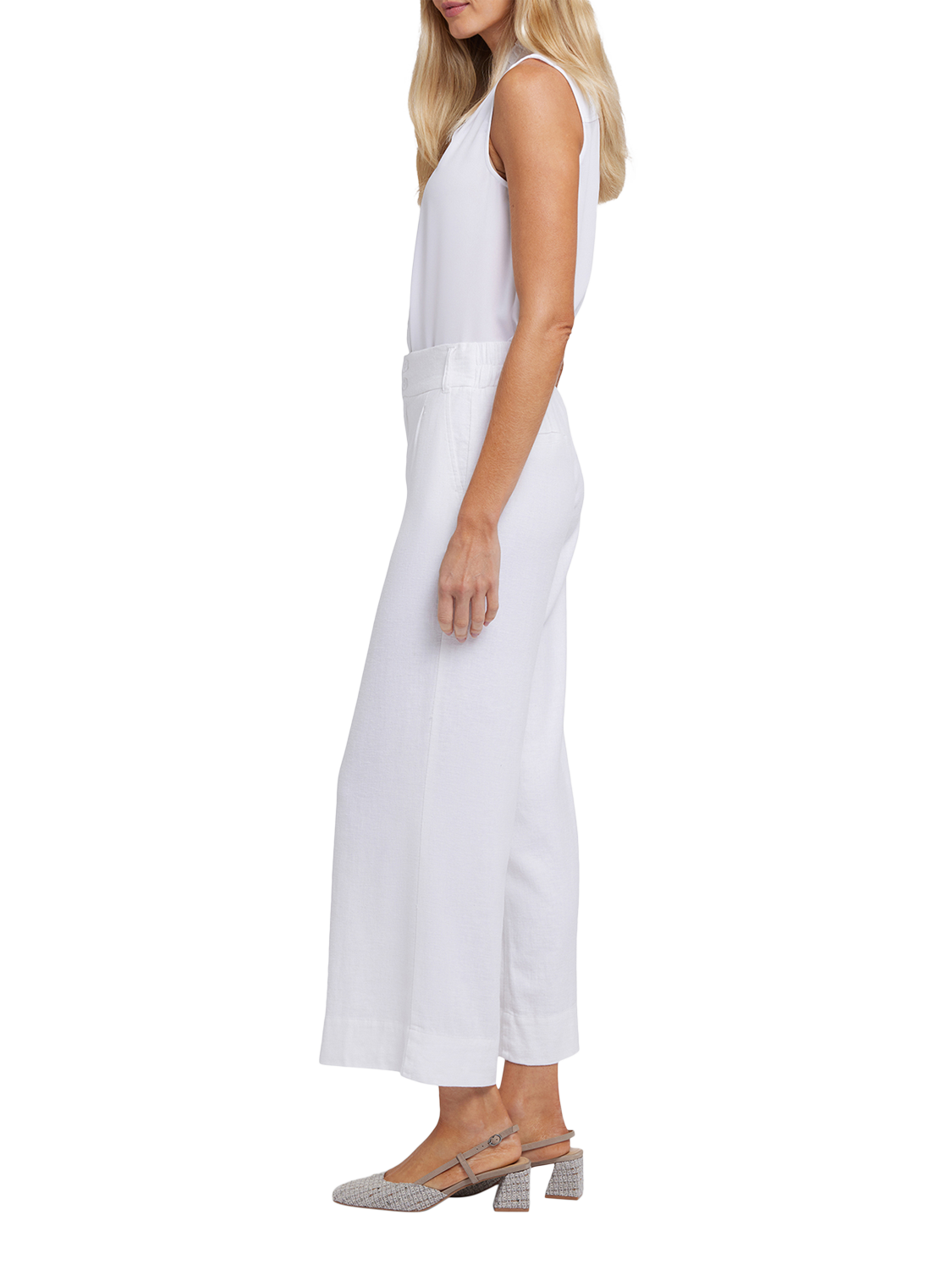 Look pulled together while feeling cool and comfortable in the Waverly Trousers by NYDJ. Their wide-leg silhouette is extra breezy in stretch linen, and they're detailed with a sculpting high waistband, back welts and deep trouser-style hems for tailored sophistication. Finished with a front zip fly with double-button closure, front slash pockets and an easy back stretch waist.