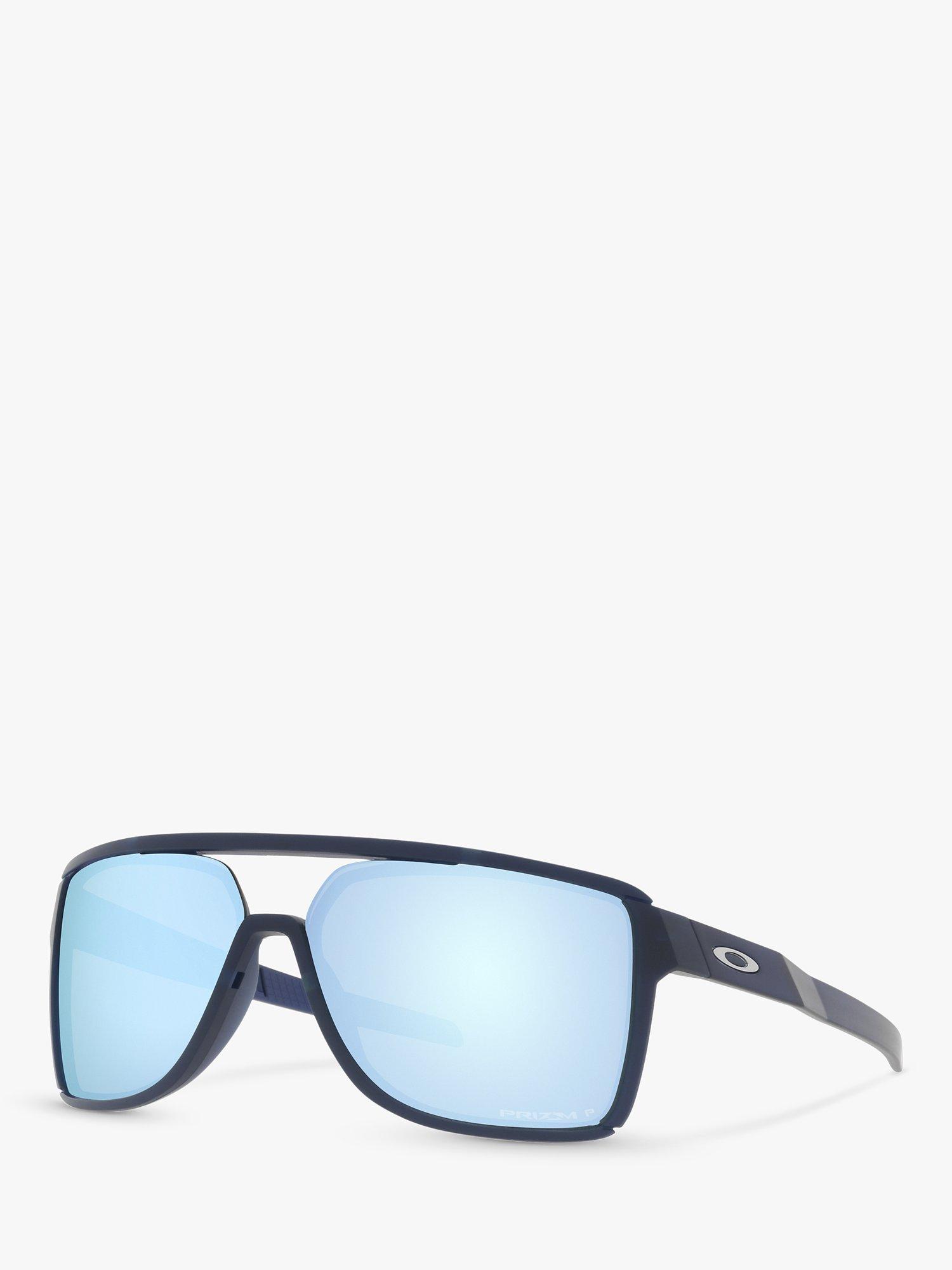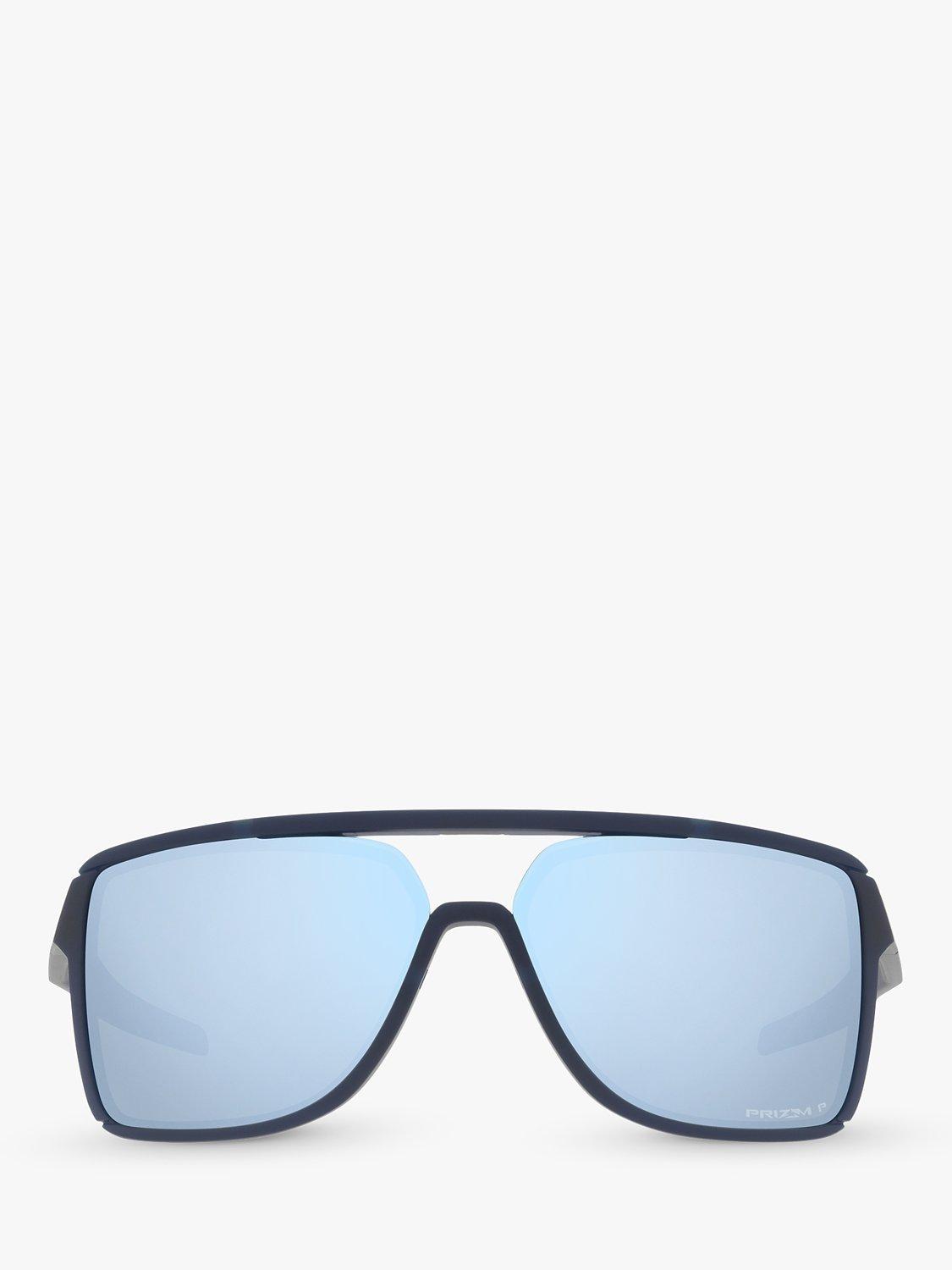 OakleyOO9147 Men's Castel Prizm Polarised Rectangular Sunglasses, Matte Navy/Light Blue