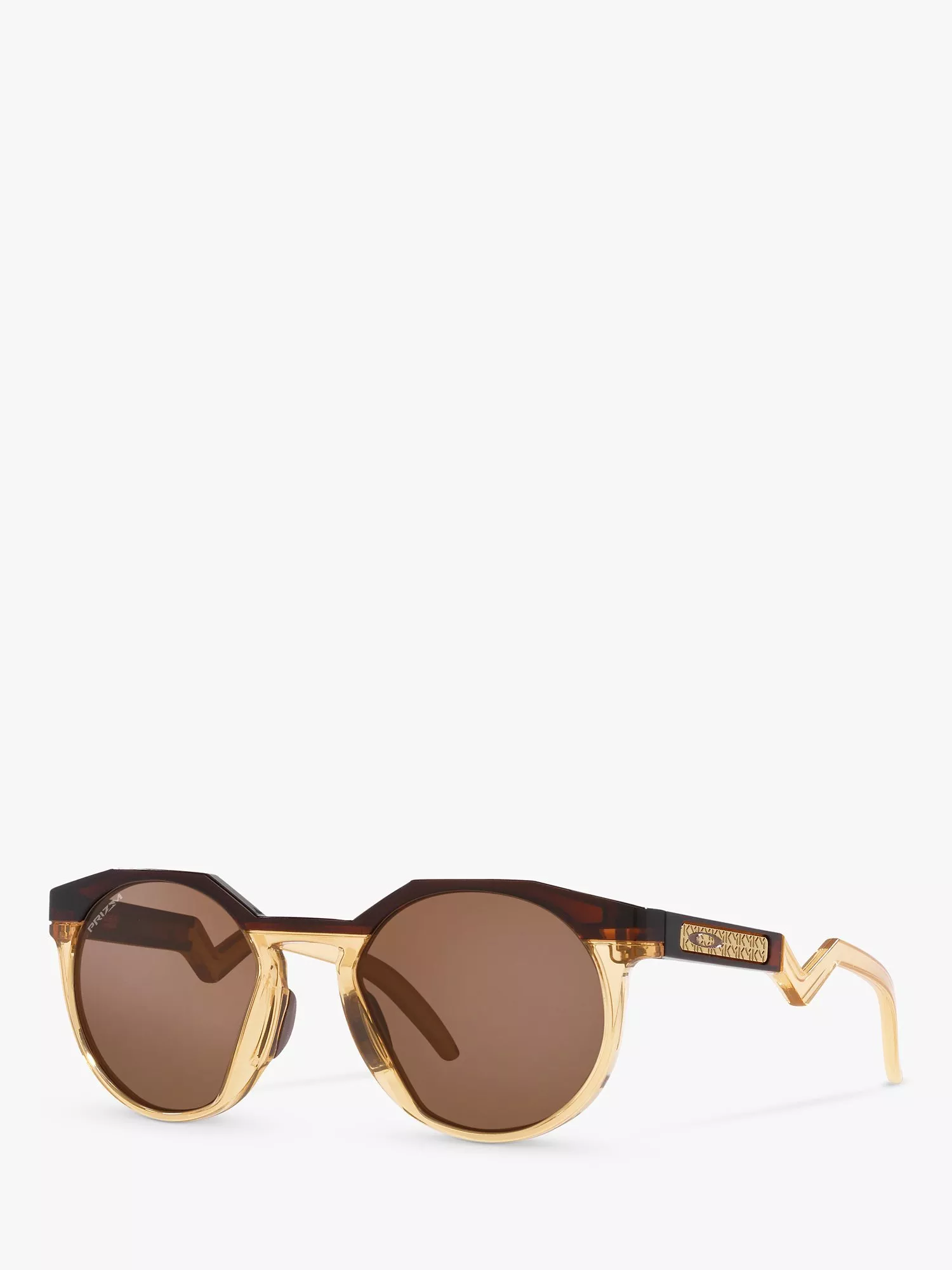 In a trend focused round shape, these men's sunglasses are designed by Oakley. With an impact-resistant makeup, easily repelling water and dust for higher clarity while out and about, they are finished with classic tinted lenses.