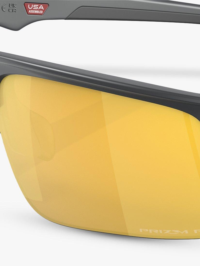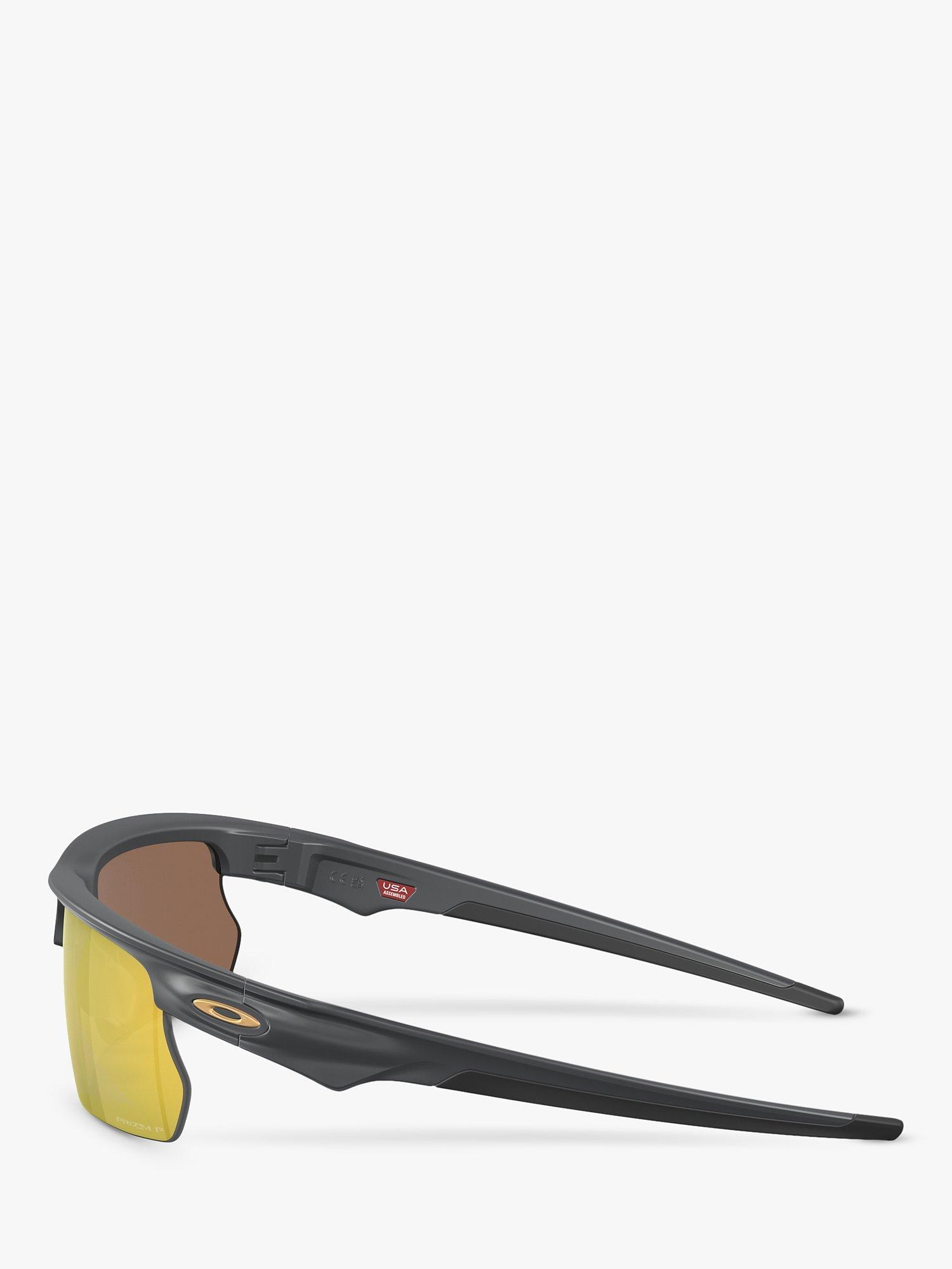 In a slim, rectangular shape, these men's sunglasses are designed by Oakley. Created from a lightweight construction to ensure easy wear all day, this pair are fitted with a polarised filter to better visual protection as they guard against reflection and glare.