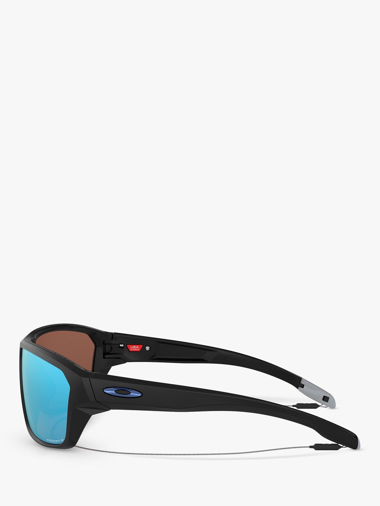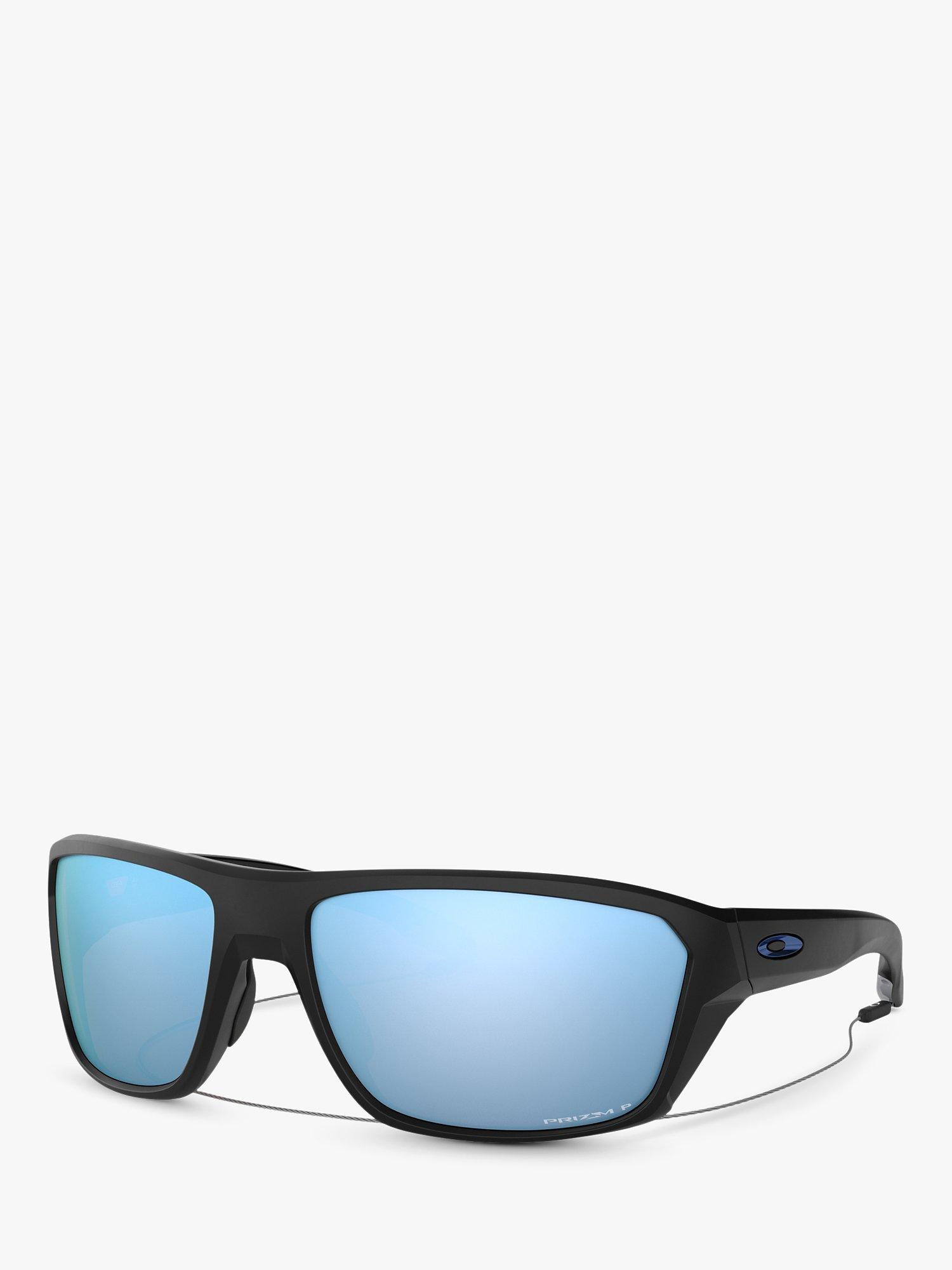 OakleyOO9416 Men's Split Shot Prizm Polarised Rectangular Sunglasses, Matte Black/Mirror Blue