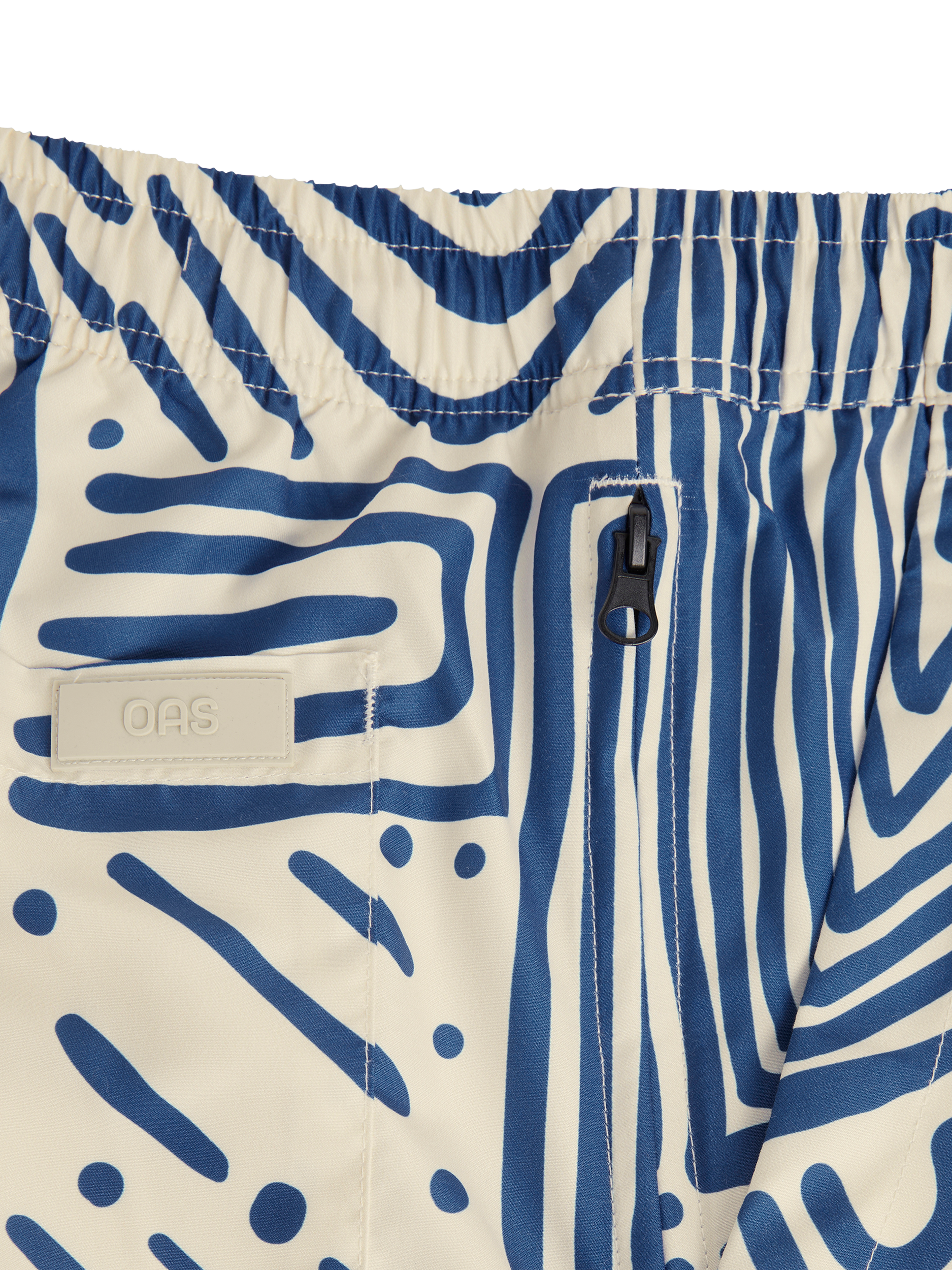 Patterned swim shorts in lightweight, quick-drying fabric. Elastic waist with four pockets including a hidden zip pocket. Mesh lining for comfort. Tailored fit and mid-rise.