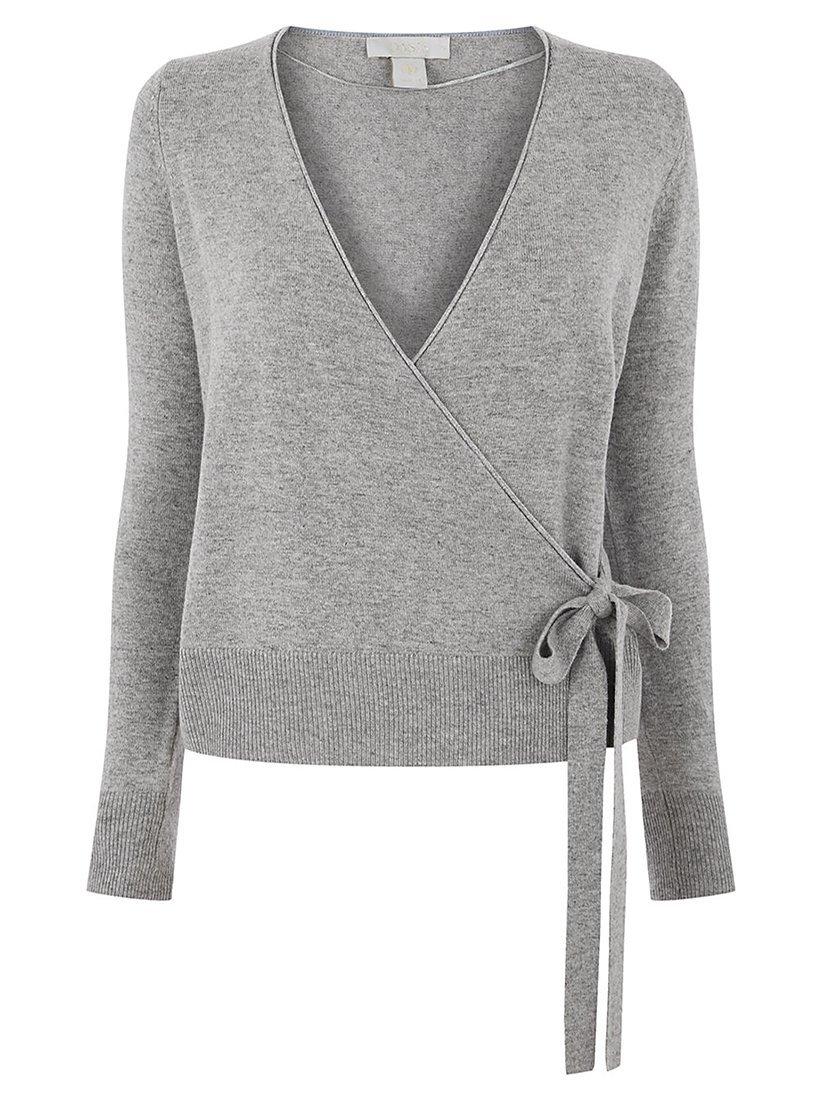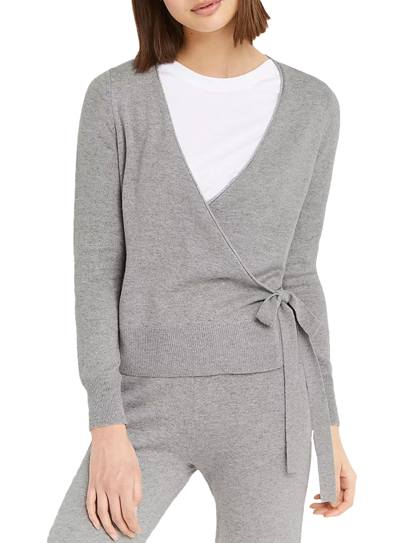 Made from a soft knit fabric with a hint of warm wool, this cardigan features a figure flattering wrap front design, long sleeves and ribbed cuffs and hem.