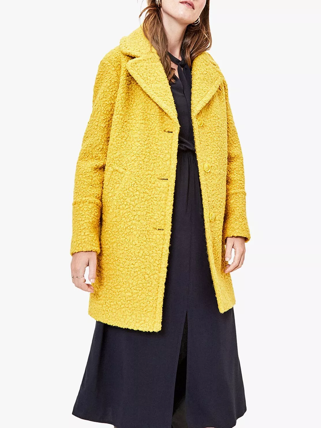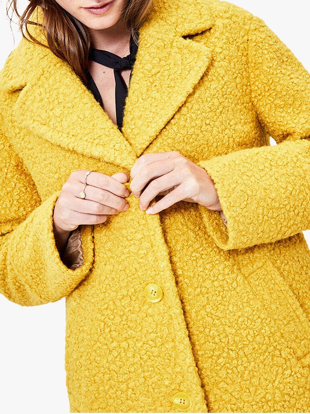 A soft textured outerwear piece for ultimate warmth in cooler months, this coat from Oasis has a comfortably cosy teddy bear inspired finish. Made to a relaxed silhouette for easy layering, it is detailed with a soft lapel collar, side pockets and a button fastening.