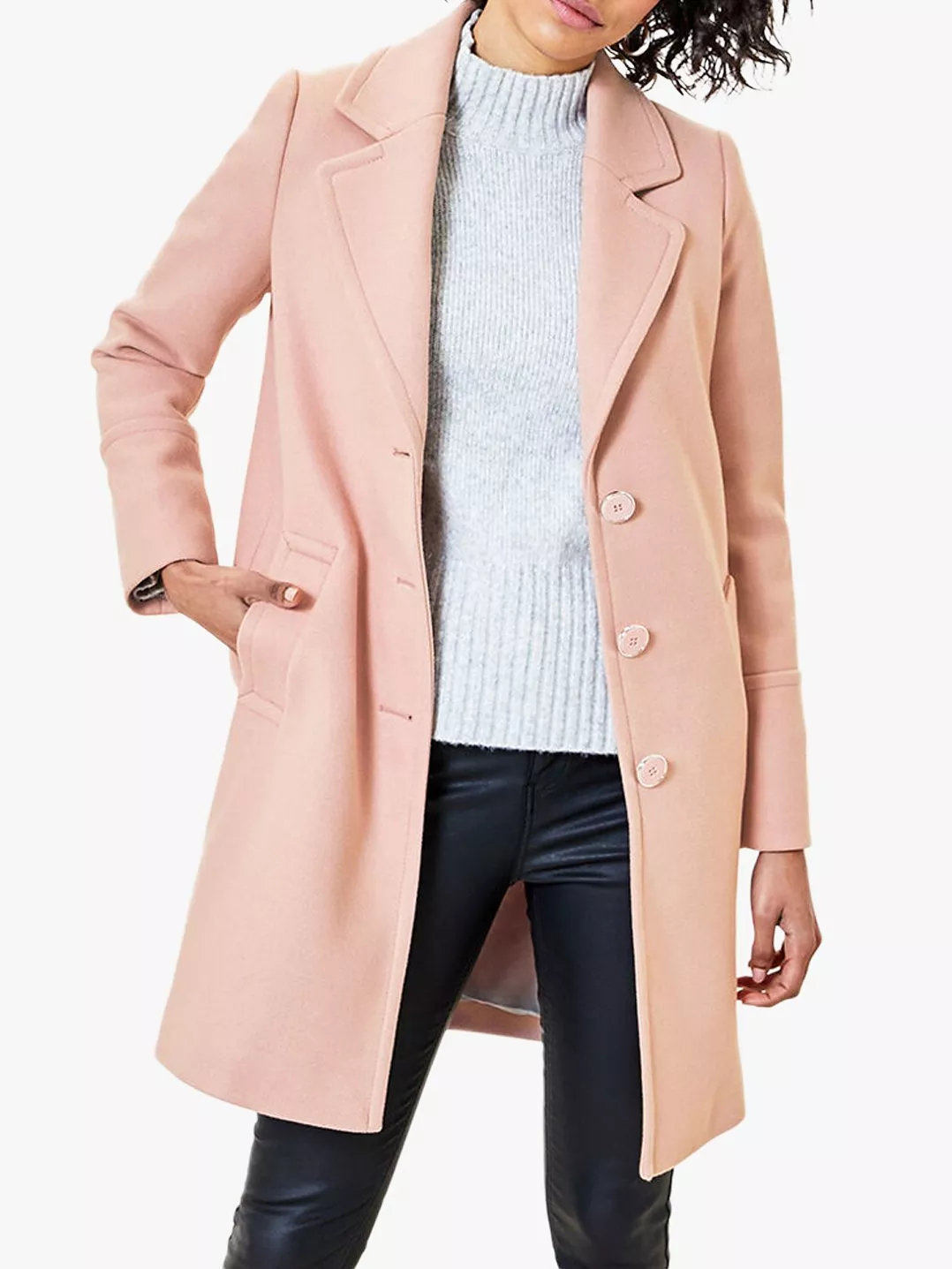 This versatile coat from Oasis is single-breasted with three buttons fastening down the front. Side pockets lend a practical touch and large notch lapels create a stylish look. Fully lined for comfort, the body of the coat has a hint of wool for warmth.