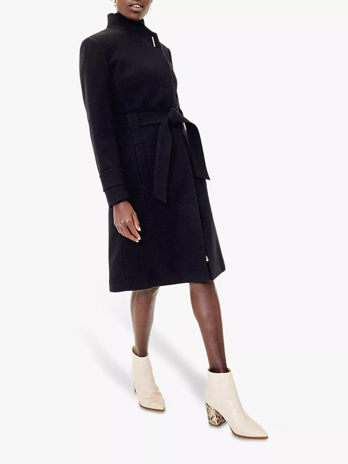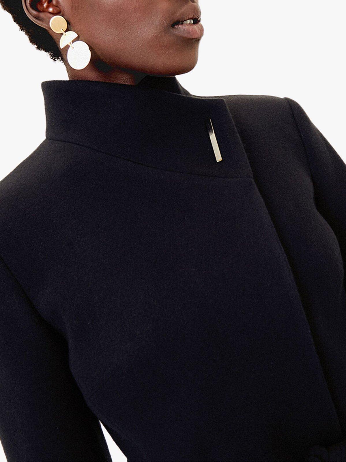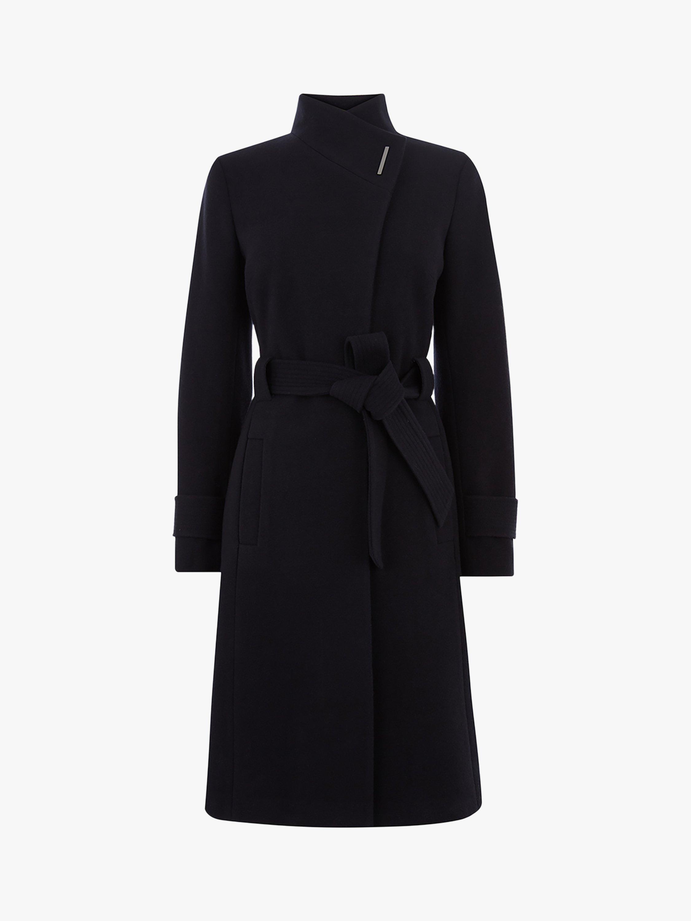 With its sleek wrap stand up collar, concealed front button fastening offering a streamlined silhouette and side pockets for practicality, this piece is a winter staple you'll wear year after year.