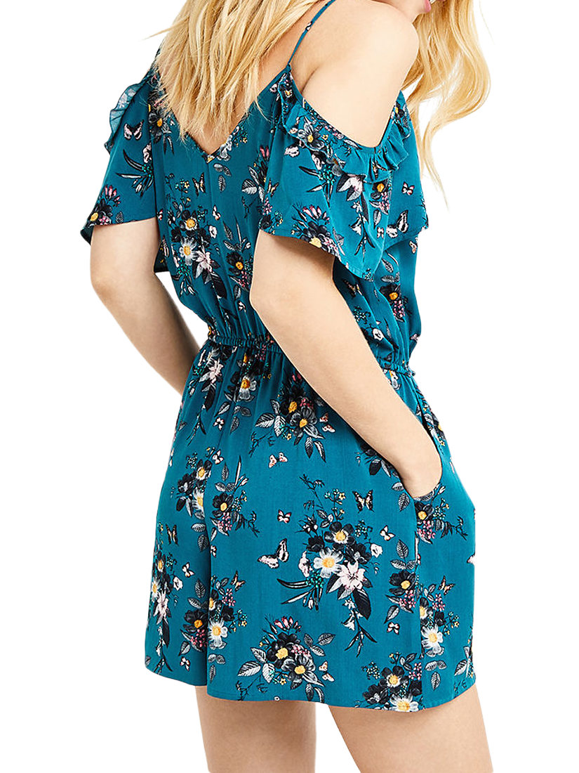 Crafted from a lightweight and floaty fabric, this playsuit falls to a comfortable mini length and is printed with an understated floral pattern.