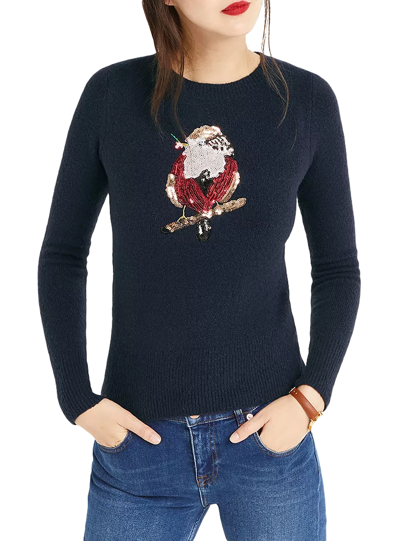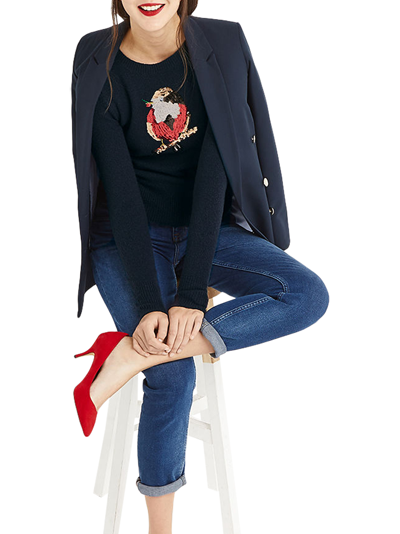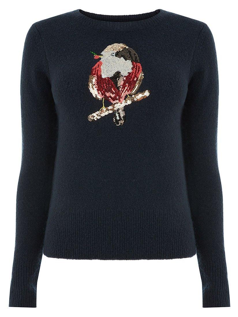 In a soft and stretchy knit, this jumper offers a cosy and warm wear. It's made to a slim fit and features a crew neckline, ribbed trims and a sweet sequin embellished robin.