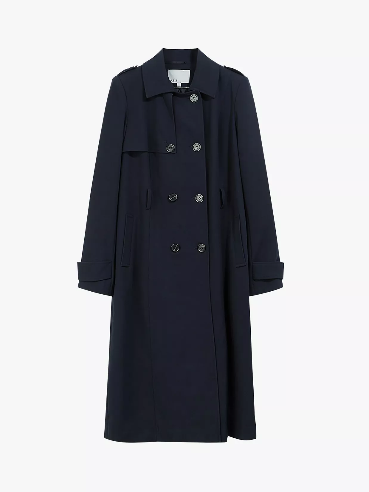 A sartorial staple, this Oasis trench coat is a perfect seasonal addition to your wardrobe. Designed with a three-button fastening at the front and paired with large lapels and a waist belt, the cuff and shoulder details complete the traditional trench coat appeal.