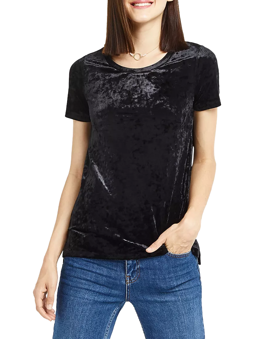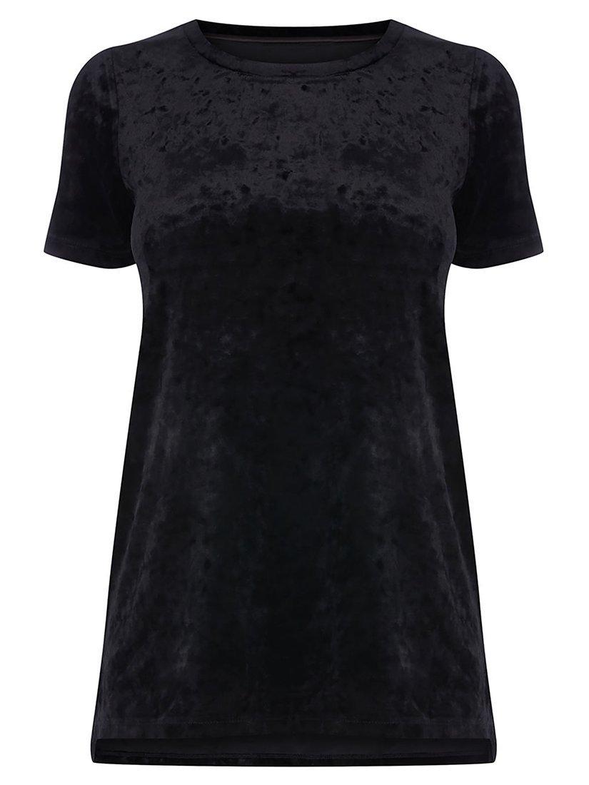 Crafted from a blend of lightweight and stretchy fabrics, this tee features a round neckline, short sleeves and is intended to hit at hip length. Further features include an all-over velvet texture and split hems at the sides.