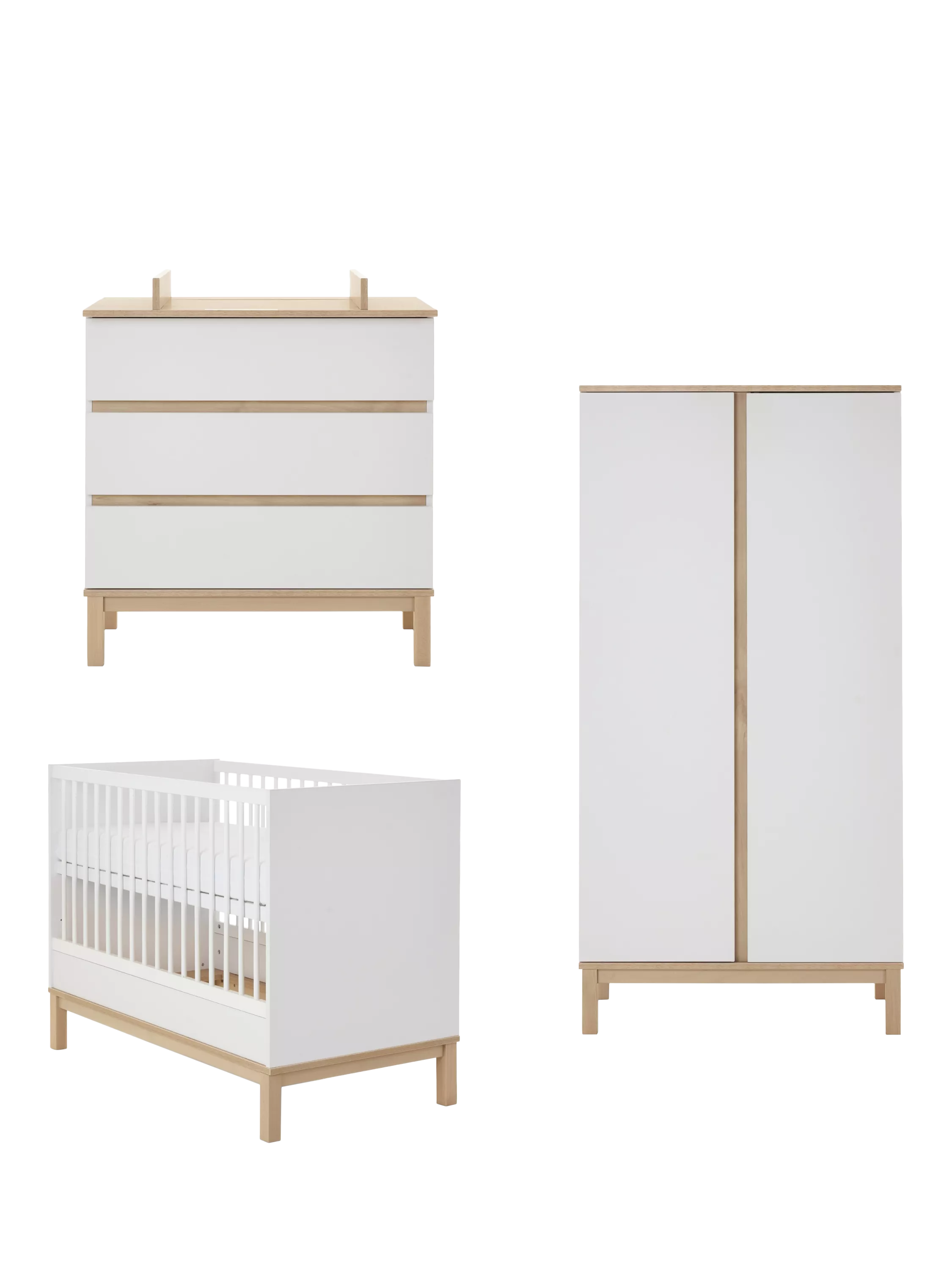 ObabyAstrid Mini Cotbed, Changing Unit & Double Wardrobe Set, White