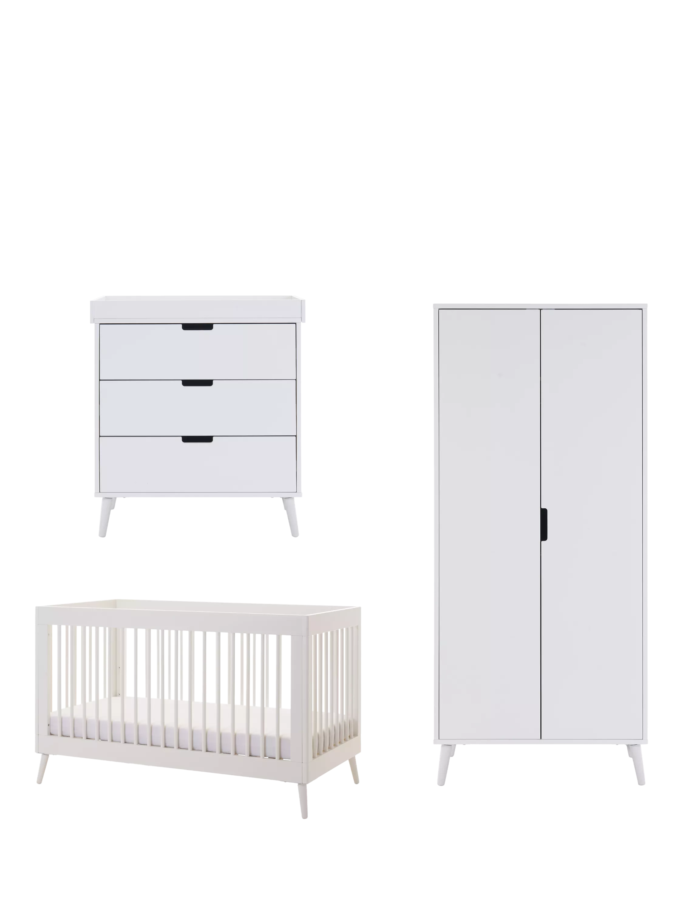 The Maya range from Obaby is inspired by Scandinavian design, featuring a clean-cut finish, making it the perfect addition for families looking to create a modern and stylish nursery. This 3-piece room set consists of the Maya cotbed, changing unit and double wardrobe.