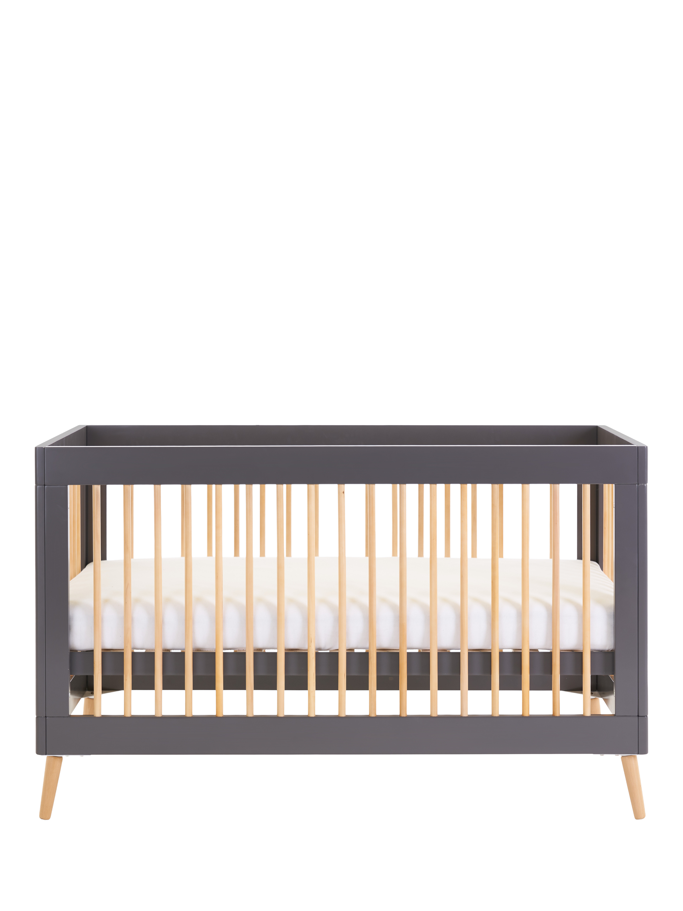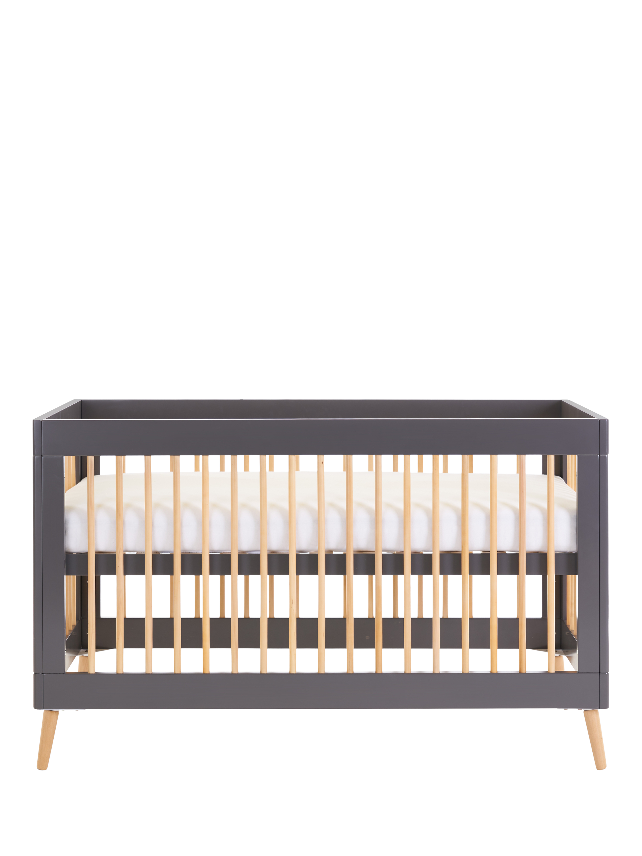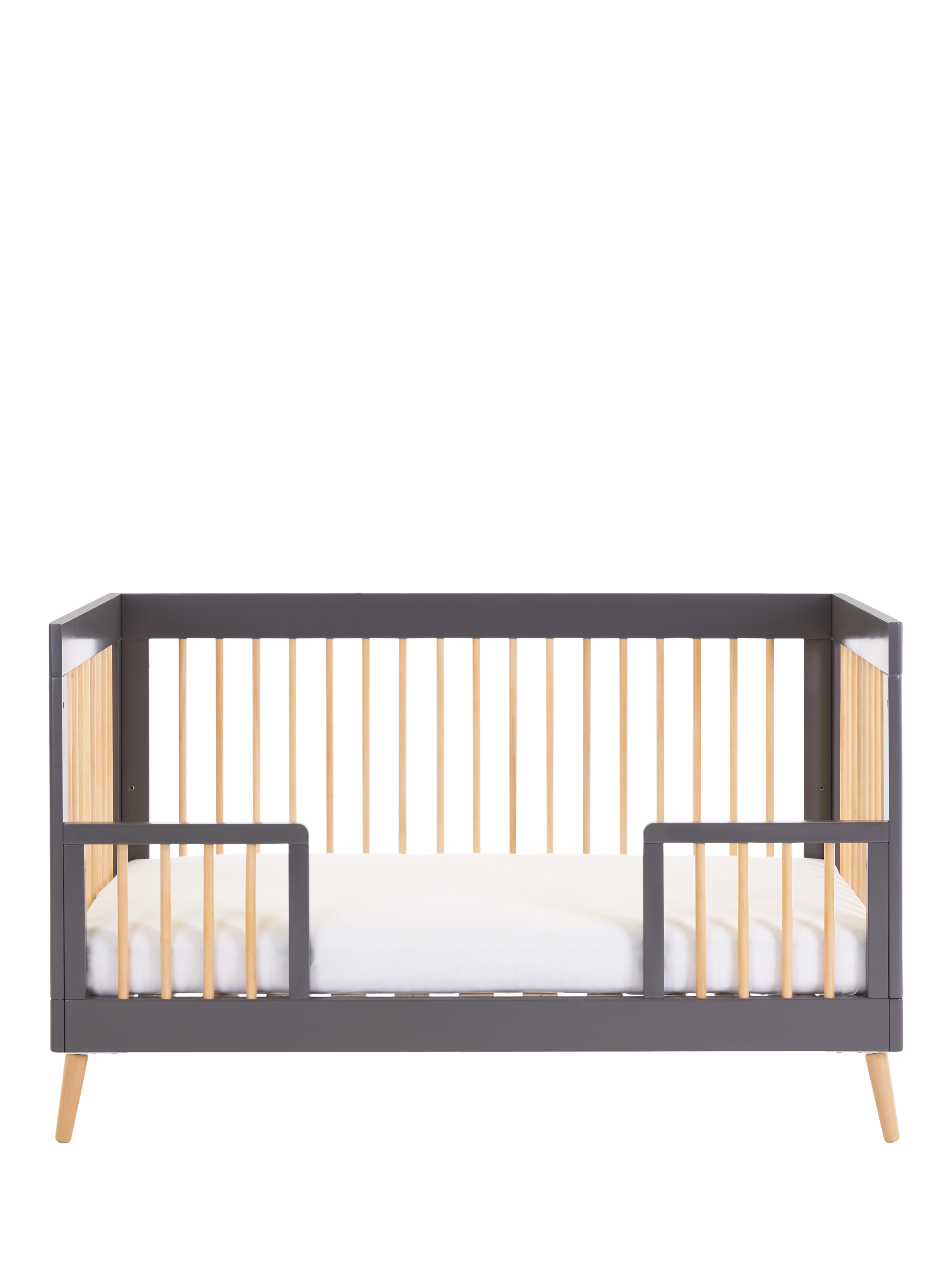 Suitable from birth, the Maya cotbed will grow with your little one. The top position of the three height-adjustable mattress base allows you to put down your baby with less pressure and strain applied to your back, and as they develop and start to find their feet, you can maintain their safety by lowering the base. When your little one is ready to begin their transition, the included dual-ended safety rail will provide reassurance and familiarity during an often daunting time, and once they are used to their "big bed" this can be simply removed to create a stylish toddler bed. Requires an Obaby 140 x 70cm mattress, available separately.