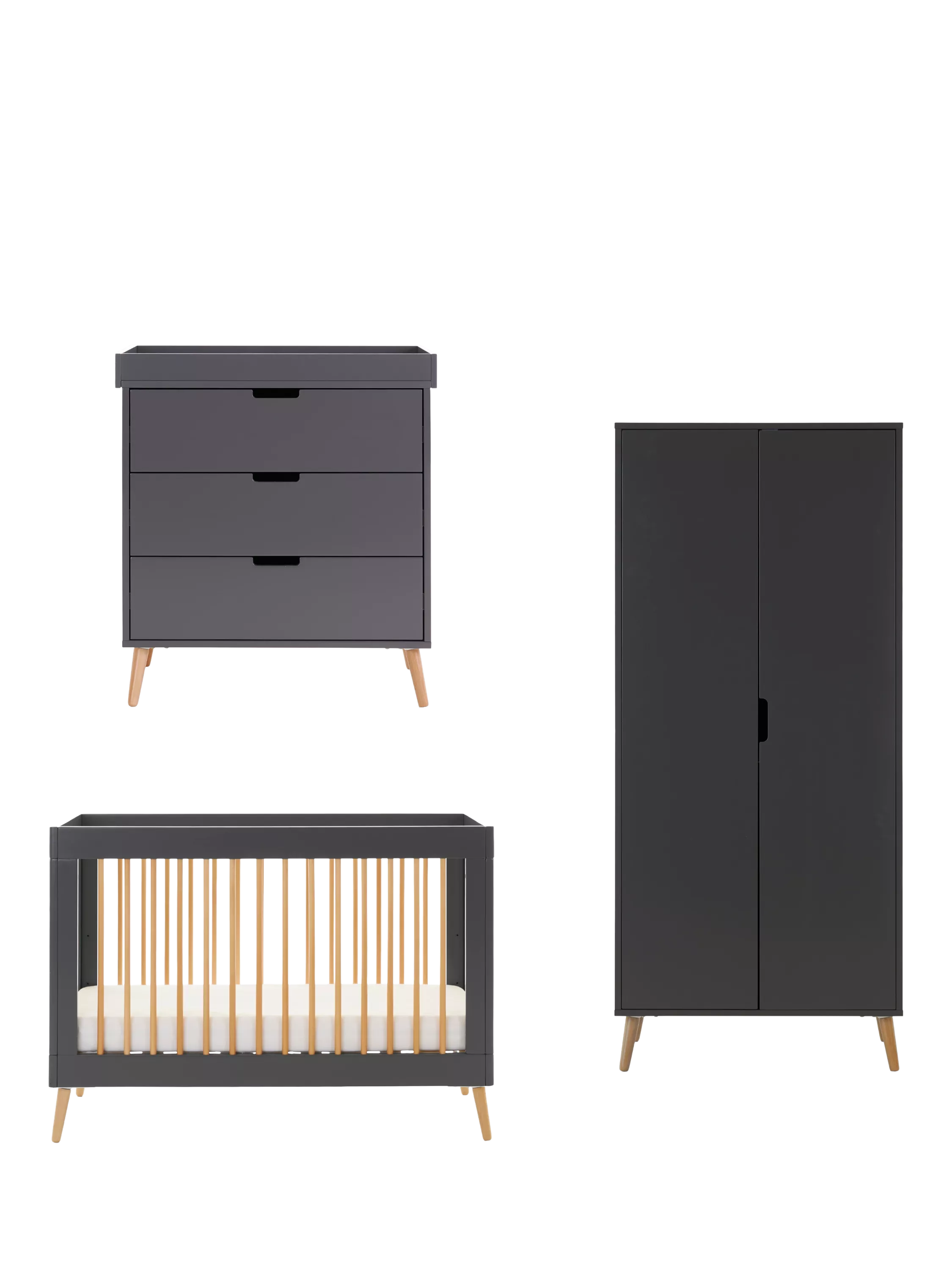 ObabyMaya Mini Cotbed, Changing Unit & Double Wardrobe Set, Slate/Natural