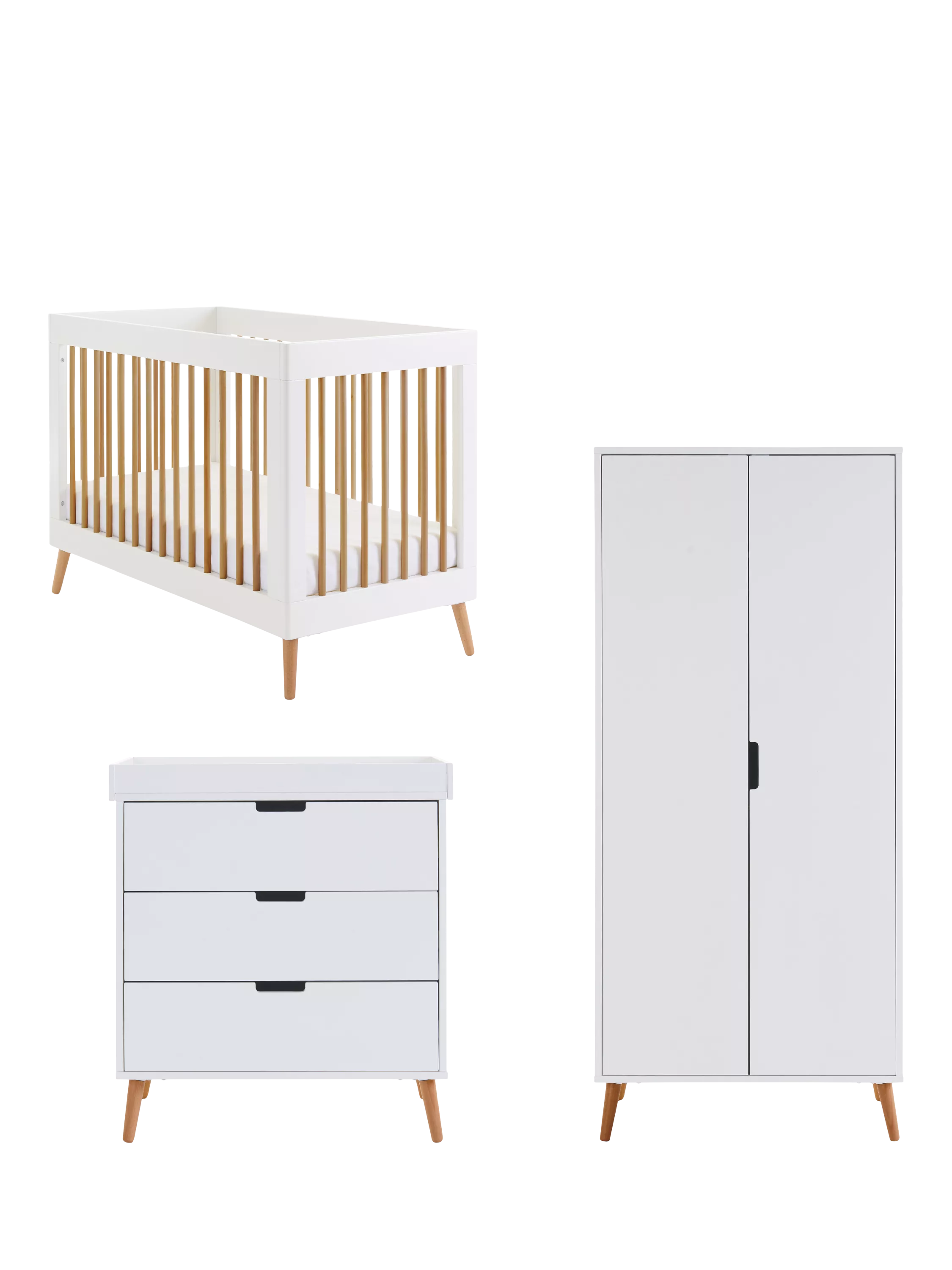 The Maya Mini three-piece room set consists of the Maya Mini cot bed, changing unit and double wardrobe.