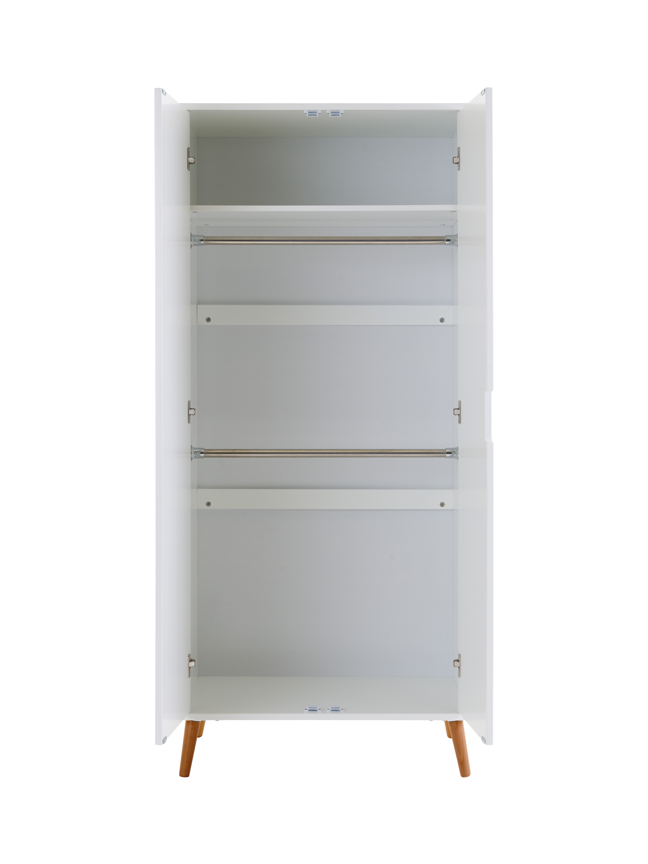 Completing the room set is the Maya double wardrobe. Putting style and functionality at the forefront, it offers the ideal storage solution for your little one's clothes. The large cupboard space features two hanging rails and a single full-width shelf, all fronted by double soft-close doors with recessed handles. Putting your baby's adorable outfits away has never been easier.