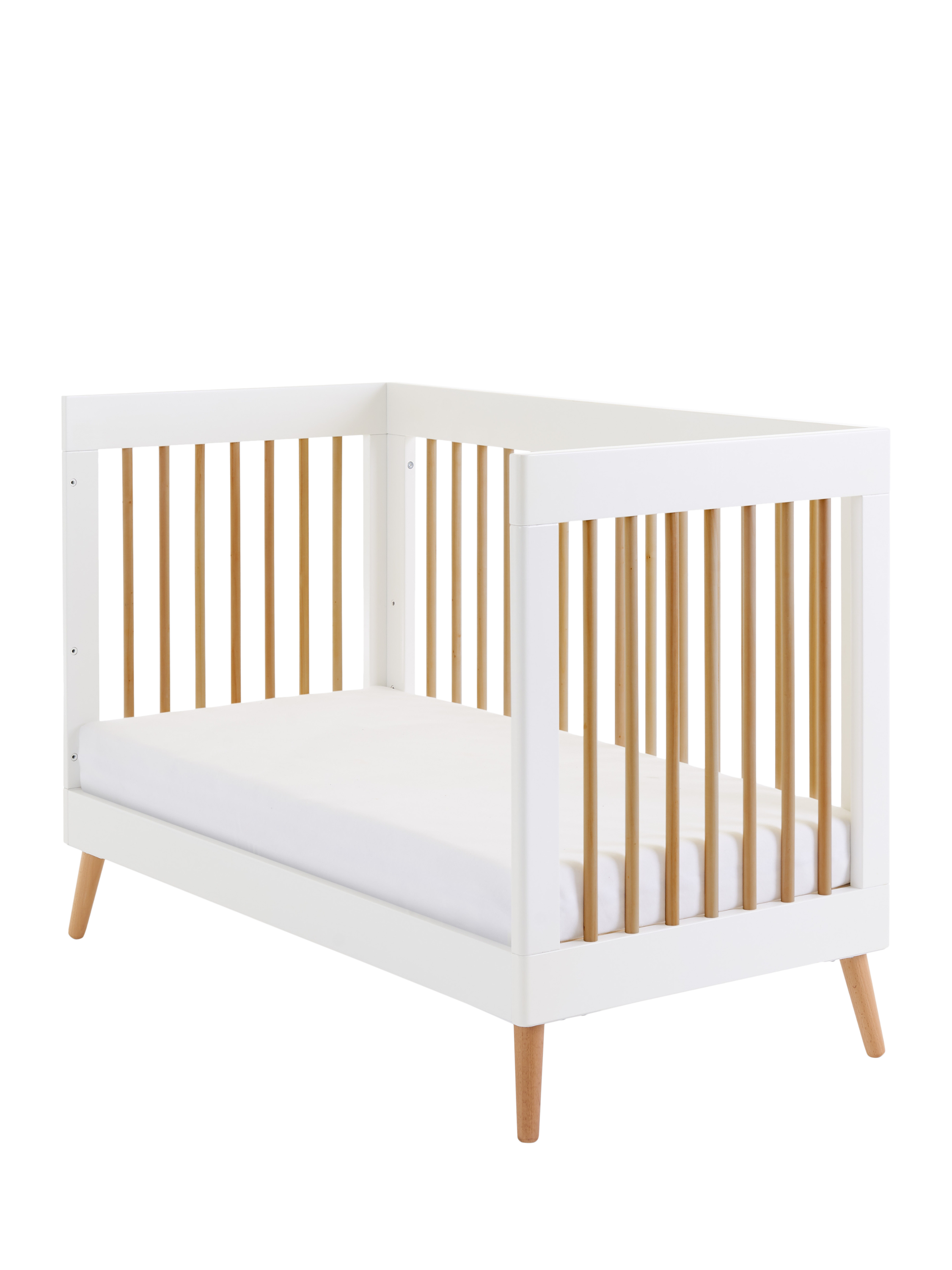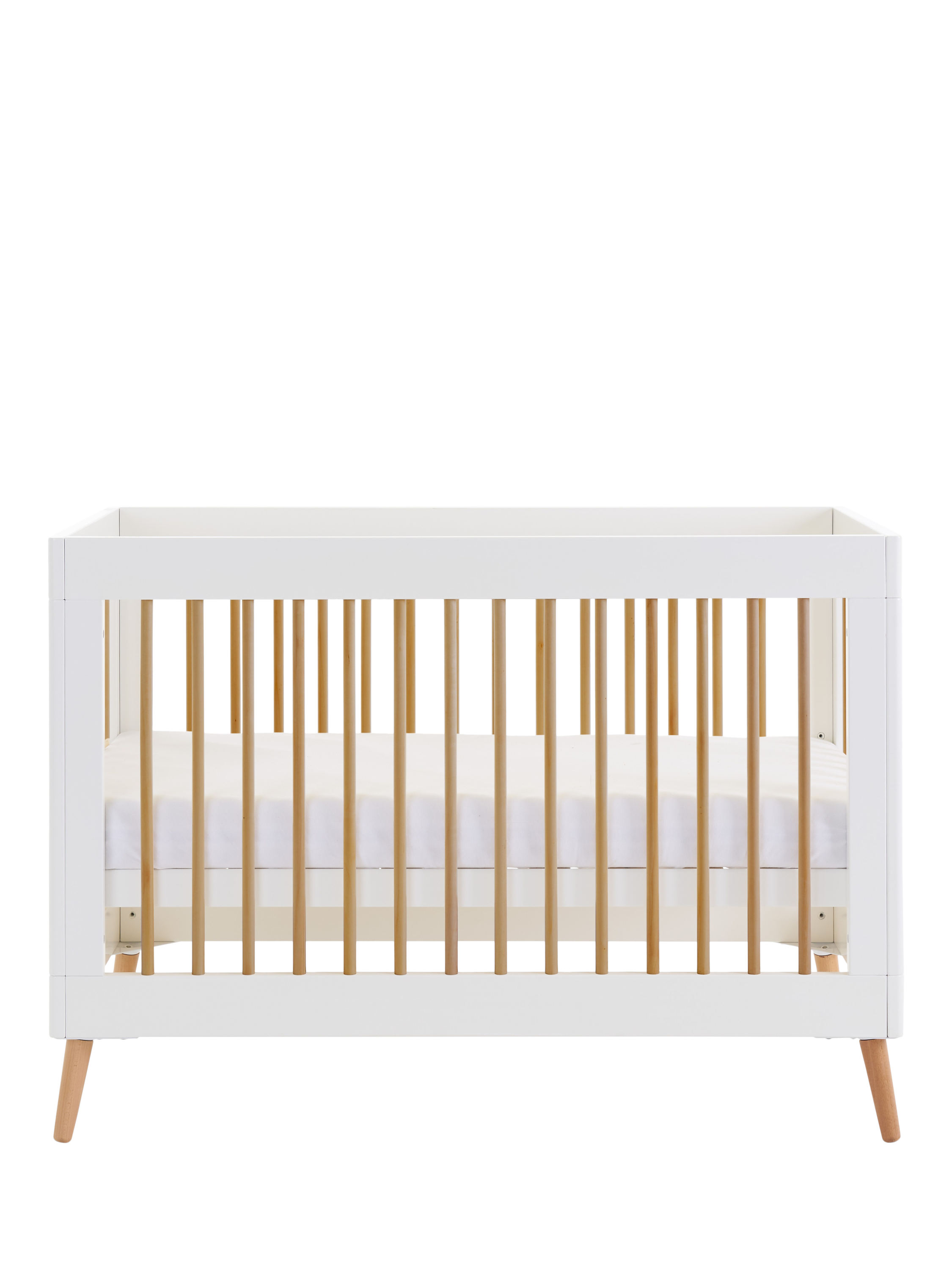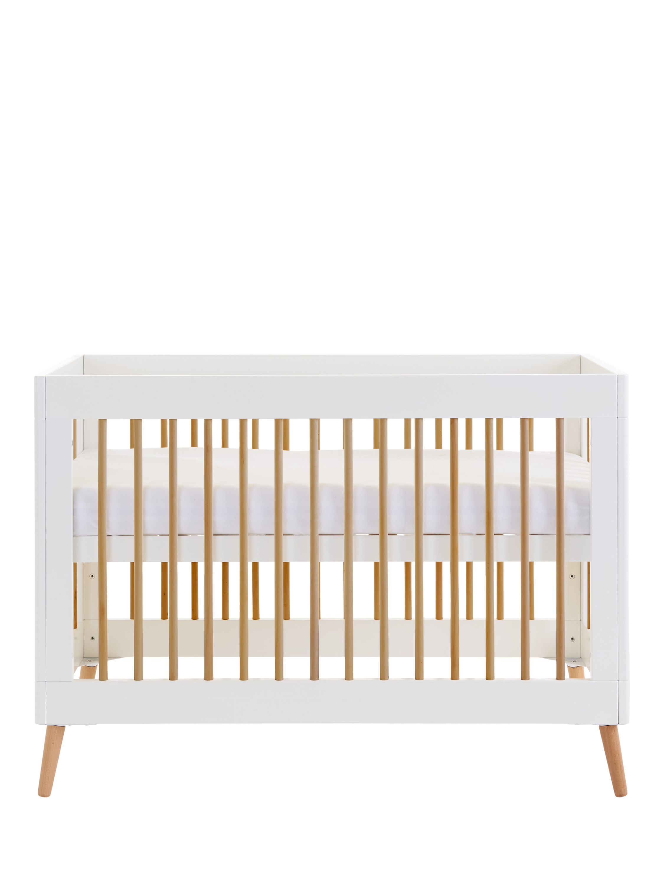 Featuring the same aesthetic and high-quality finish of the regular-sized cot bed, the Maya Mini cot bed means families with a more compact nursery do not have to compromise when looking for a space-saving alternative. The top position of the three height-adjustable mattress base allows you to put down your baby with less pressure and strain applied to your back, and as they develop and find their feet, you can maintain their safety by lowering the base.