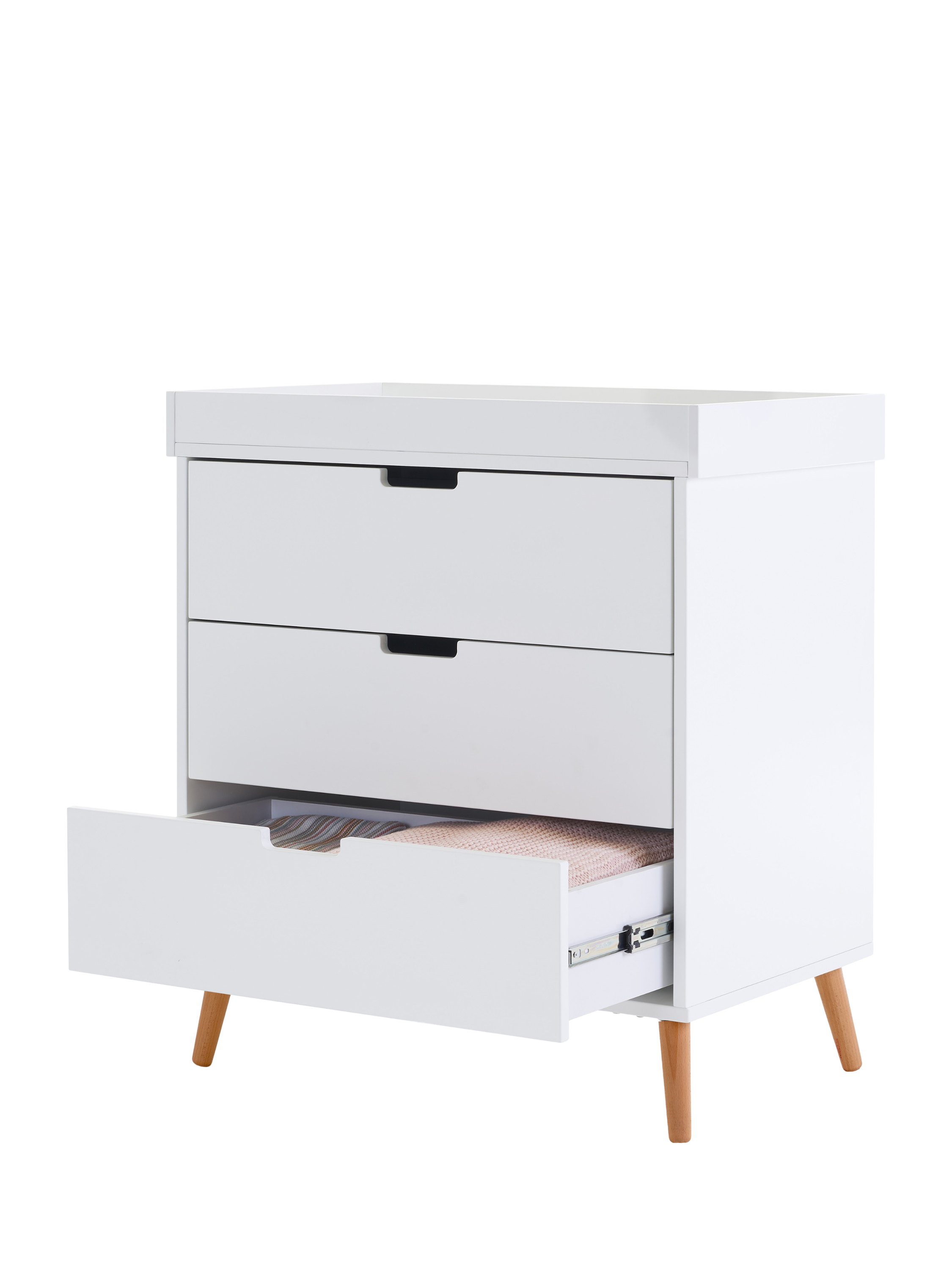 The Maya changing unit is the perfect storage companion, featuring three 34-litre capacity drawers with recessed handles, enabling you to easily put away and quickly locate your little one's belongings. On top of the unit is a changing area capable of fitting a changing mat up to 80 x 46.5cm. Once the changing area is no longer required, it can be removed to create a stylish, flat-top chest of drawers that can be used for years to come.