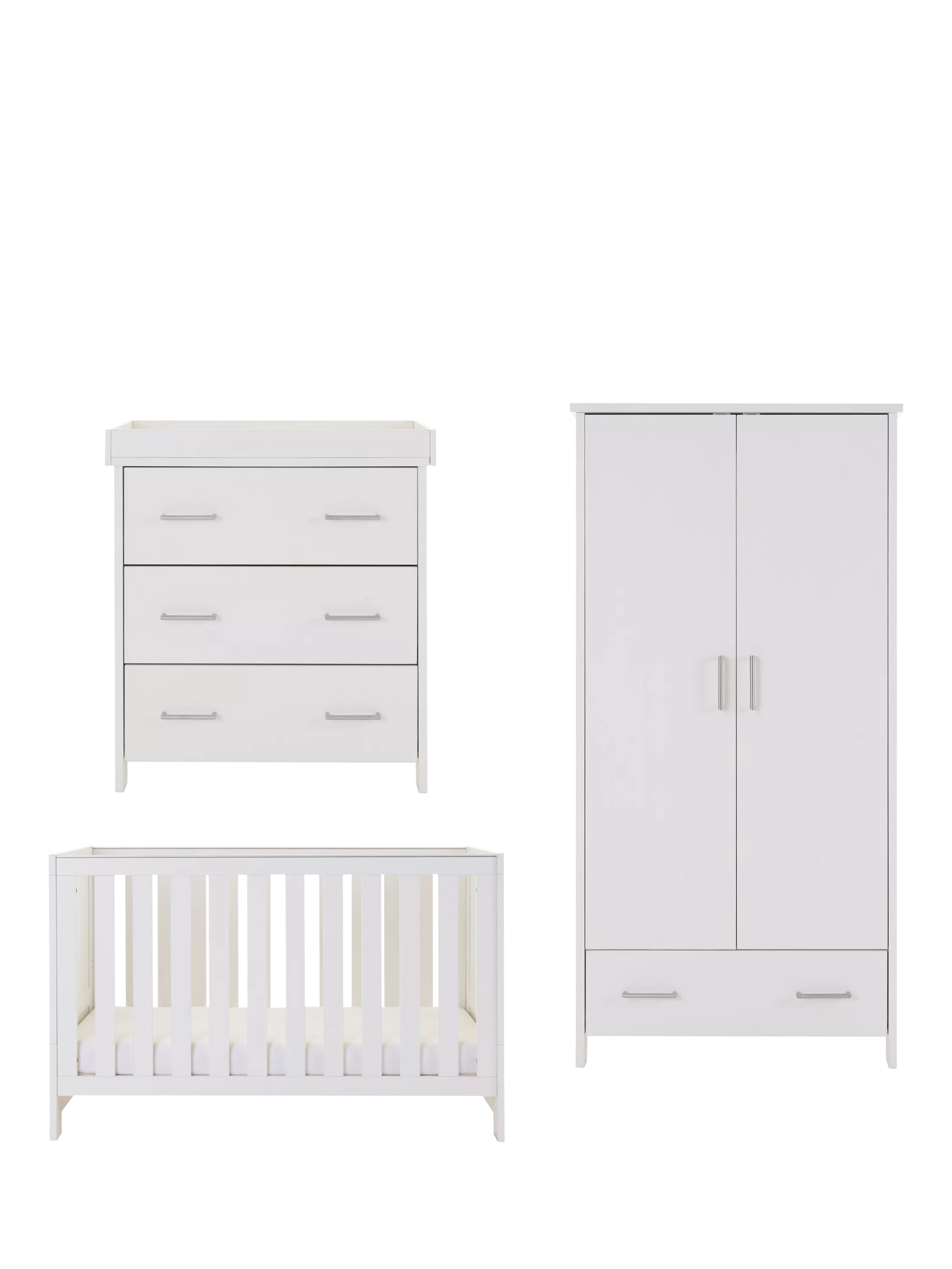 ObabyNika Cotbed with Under Drawer, Changing Unit & Double Wardrobe Set, White Wash