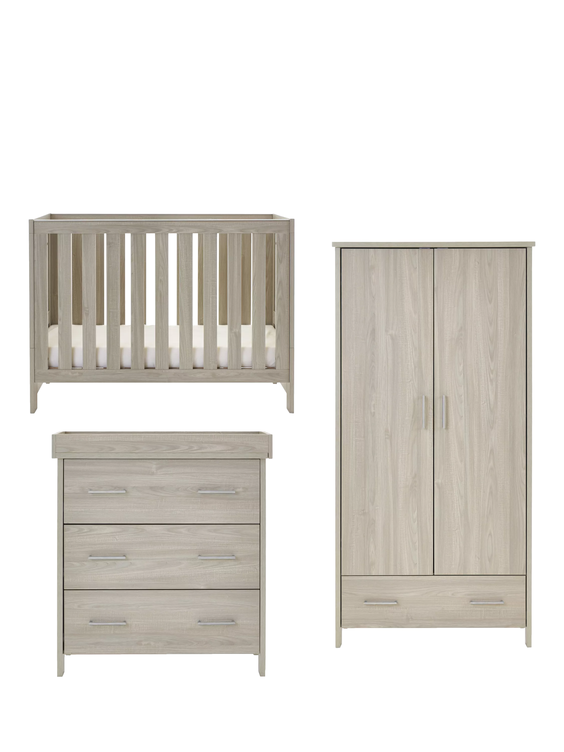 ObabyNika Mini Cotbed with Under Drawer, Changing Unit & Double Wardrobe Set, Grey Wash