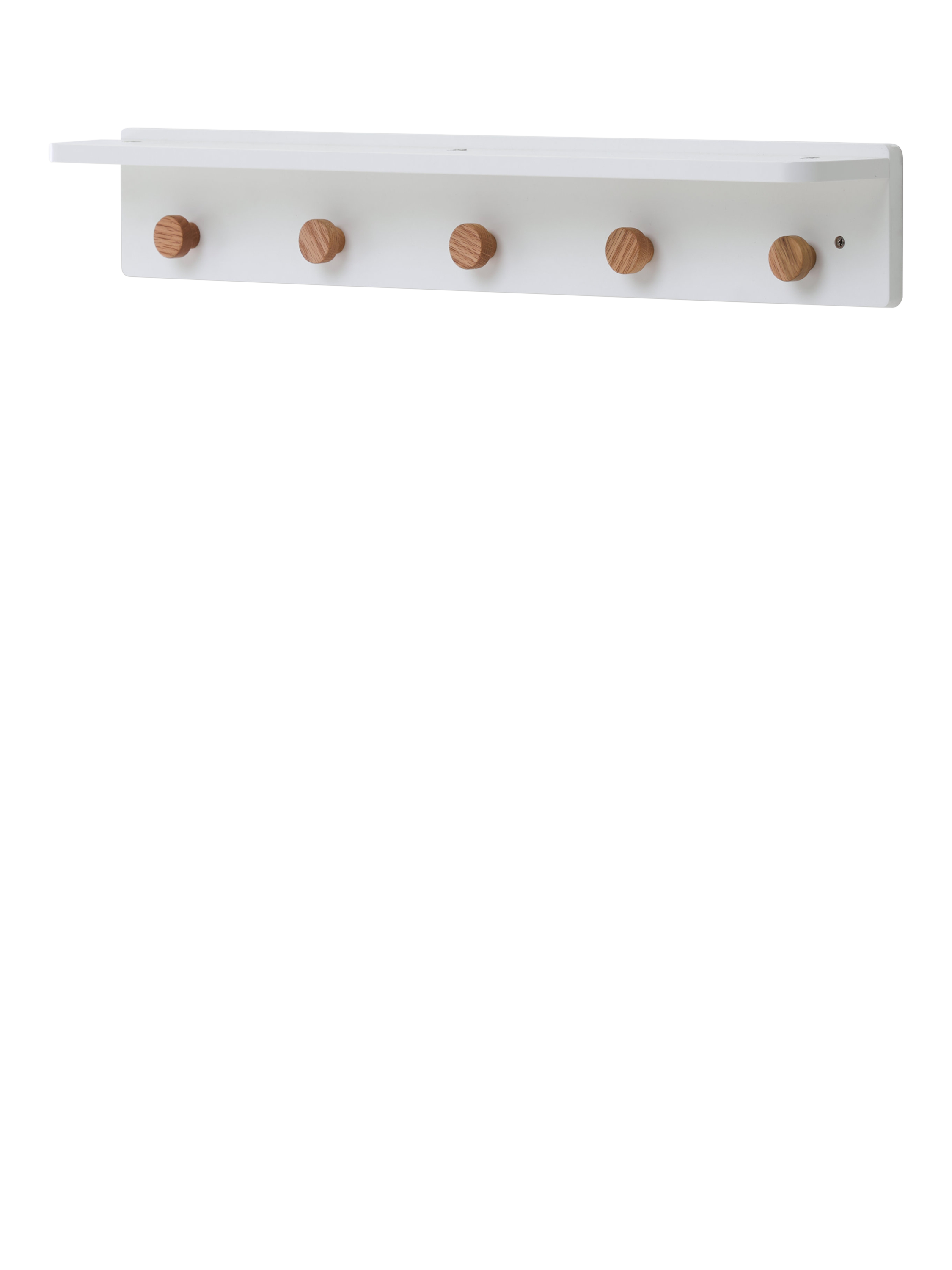 The Orla painted wood shelf is an ideal addition to your nursery for storing your little one's toys and precious belongings. With five hanging pegs, you can arrange their favourite outfits and hang decorations, too.