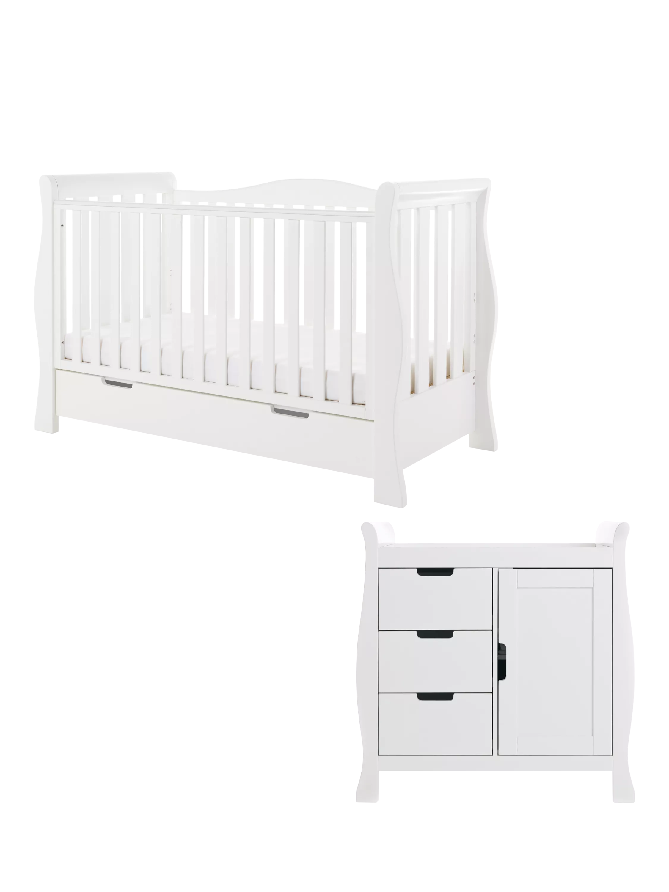 Obaby's Stamford furniture range offers families the perfect combination of style, quality and practicality. The Stamford Luxe two-piece room set consists of the beautiful Stamford Luxe cot bed with an under drawer and a closed changing unit. Both pieces feature the same elegant sleigh design that flows throughout the Stamford range.