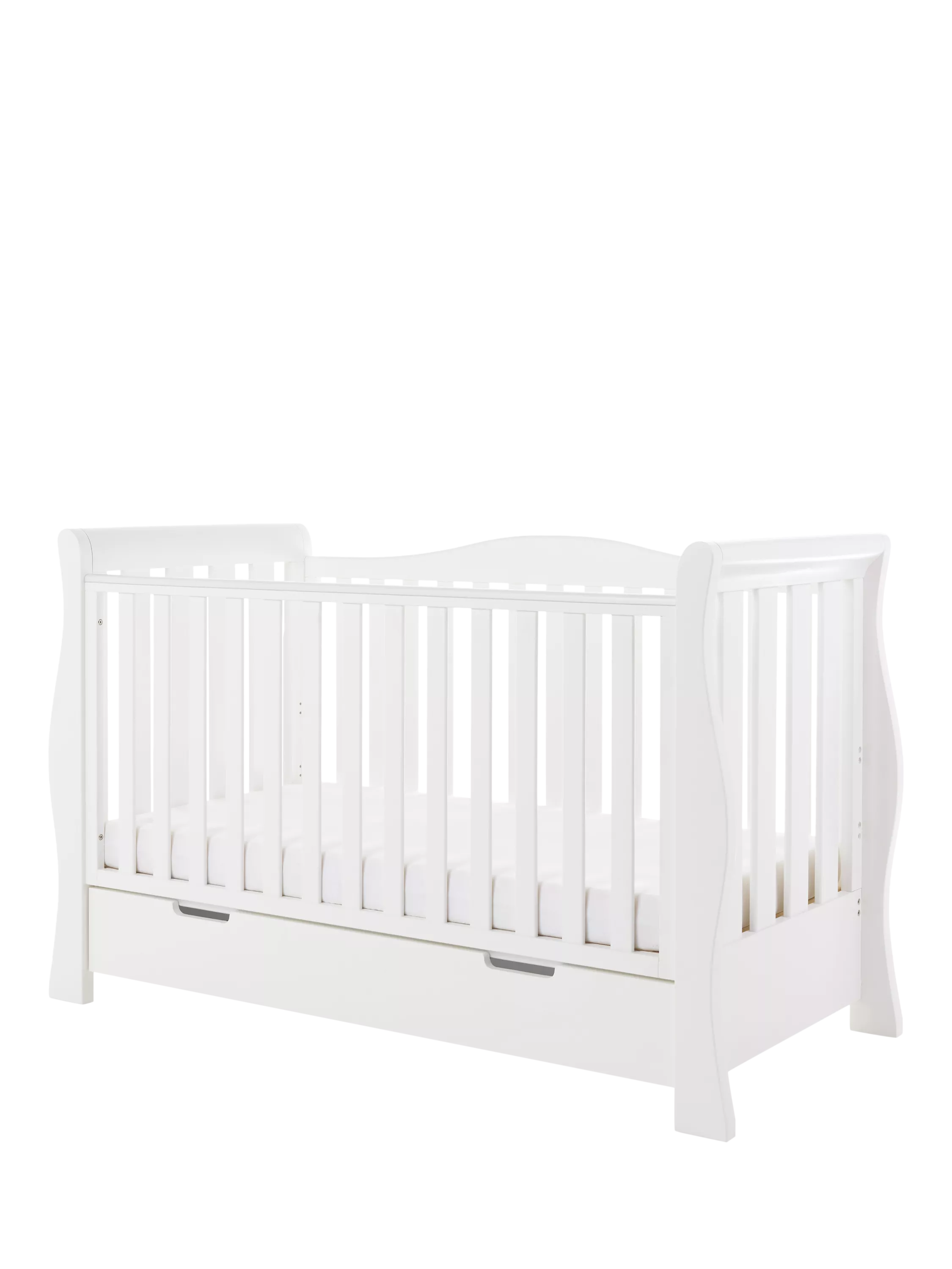 Obaby’s Stamford furniture range offers style, quality and practicality. Standing proud at the top of the range is the Stamford Luxe sleigh cotbed, crafted from thick, solid pine and featuring deluxe hand-carved ends that flow perfectly into the curved rear side rail, creating a unique look which truly sets the Luxe apart from other sleigh cotbeds.