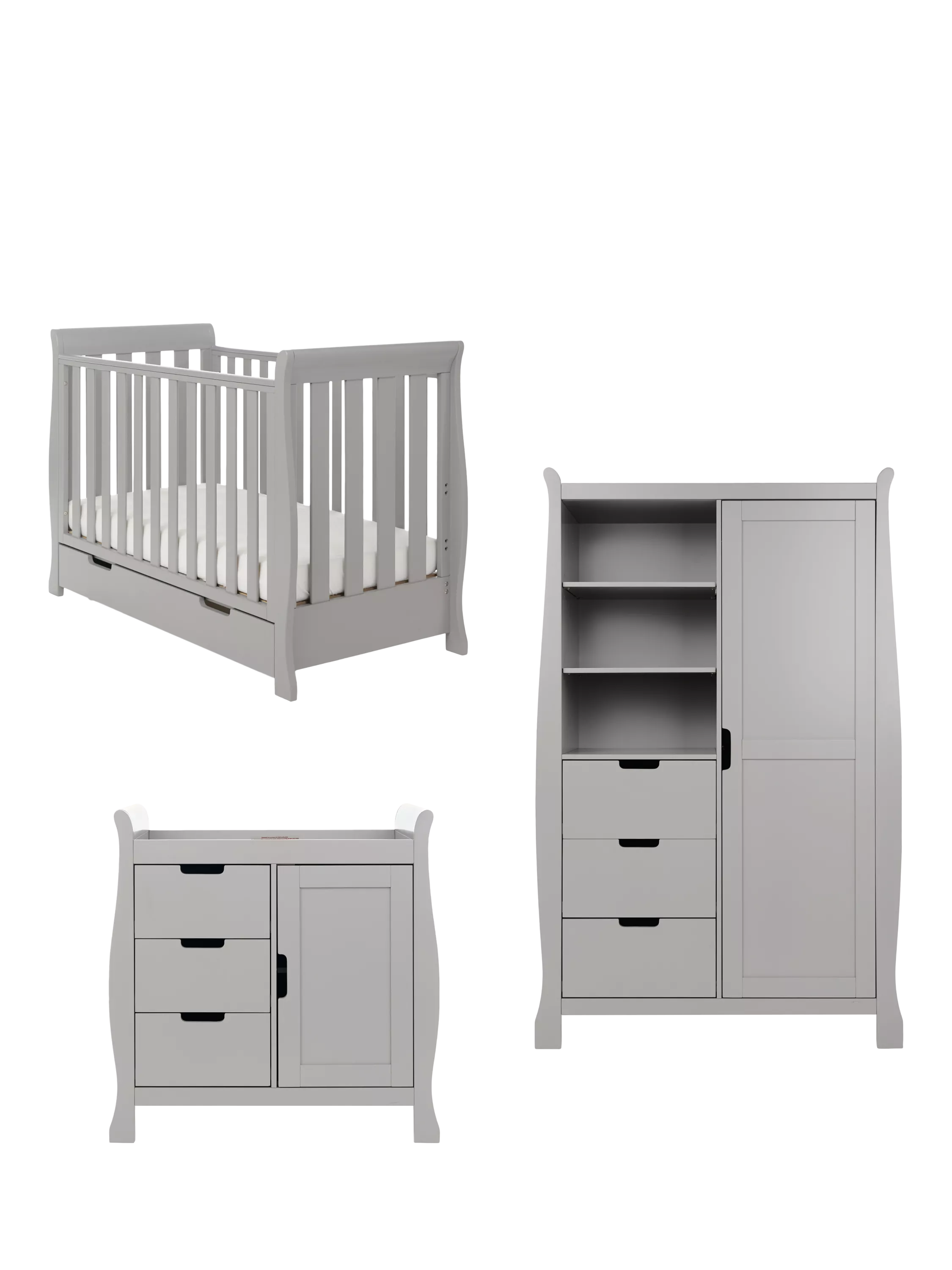 Obaby's Stamford furniture range offers families the perfect combination of style, quality and practicality. The Stamford Mini two-piece room set consists of the beautiful Stamford Mini cot bed with an under drawer, a closed changing unit and a double wardrobe. Each piece features the same elegant sleigh design that flows throughout the Stamford range.