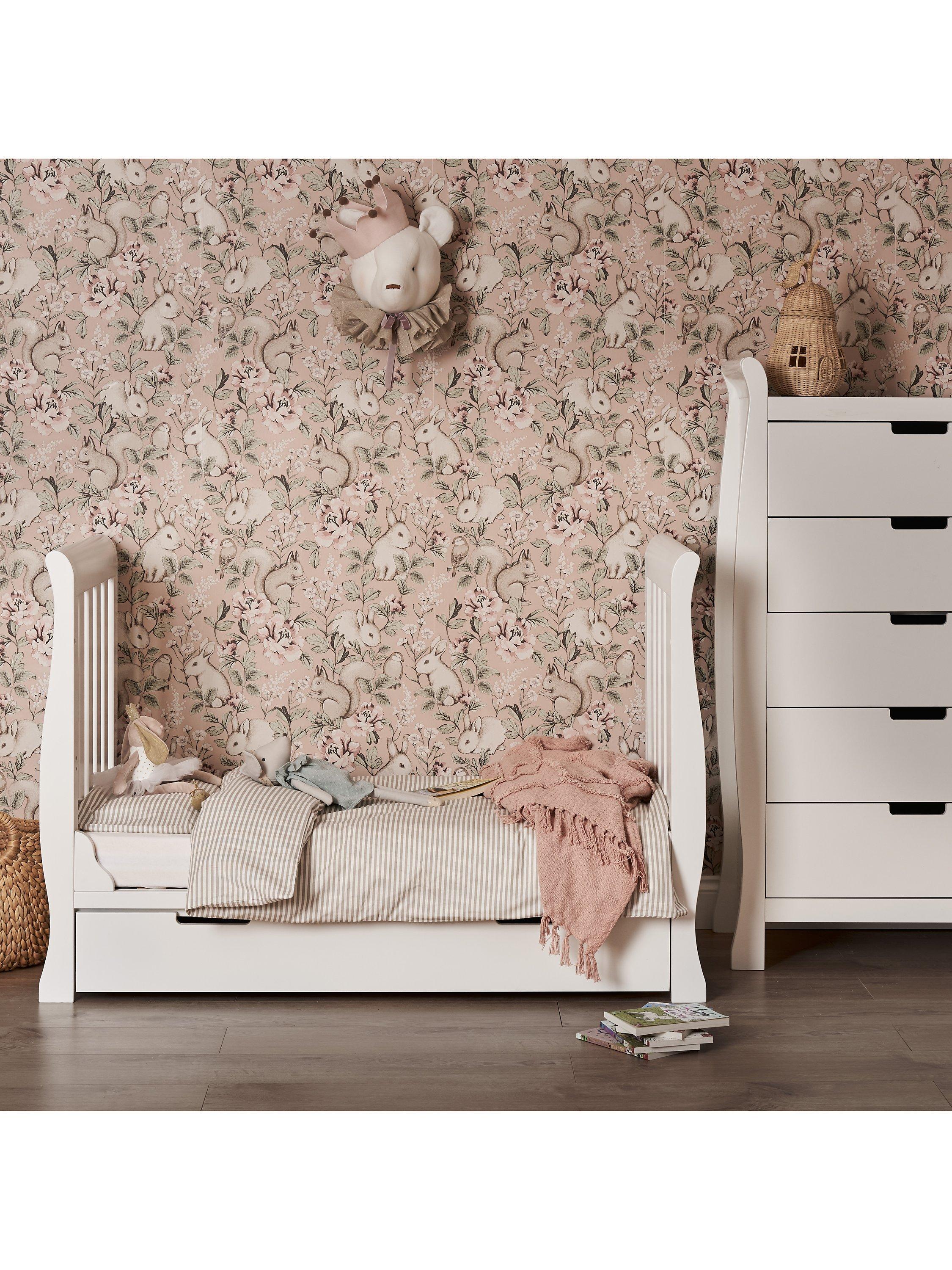 The Stamford Mini is smaller than a traditional cot bed, yet doesn’t lose any of the valuable features. Teething rails ensure your child’s delicate first teeth are protected and the slatted ends and sides allow you to watch over your little one during their most peaceful moments. The three-position mattress base offers ease of access in its highest position then, as your little one grows, the mattress base can be lowered by two further positions providing extra safety and reassurance. Once they are ready to progress to a bed, the sides can be removed to create a stylish toddler bed, providing the perfect night's sleep until approximately three years old. When they have outgrown the toddler bed, simply re-add the rear slatted rail, and your bed is transformed into the perfect day bed.