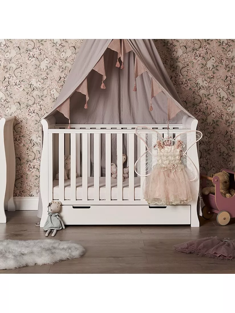 The Obaby Stamford furniture range offers families the perfect combination of style, quality and practicality. The Stamford Mini sleigh cot bed is the perfect addition to any nursery, its elegant sleigh design offers traditional styling while its slatted ends add a contemporary touch.