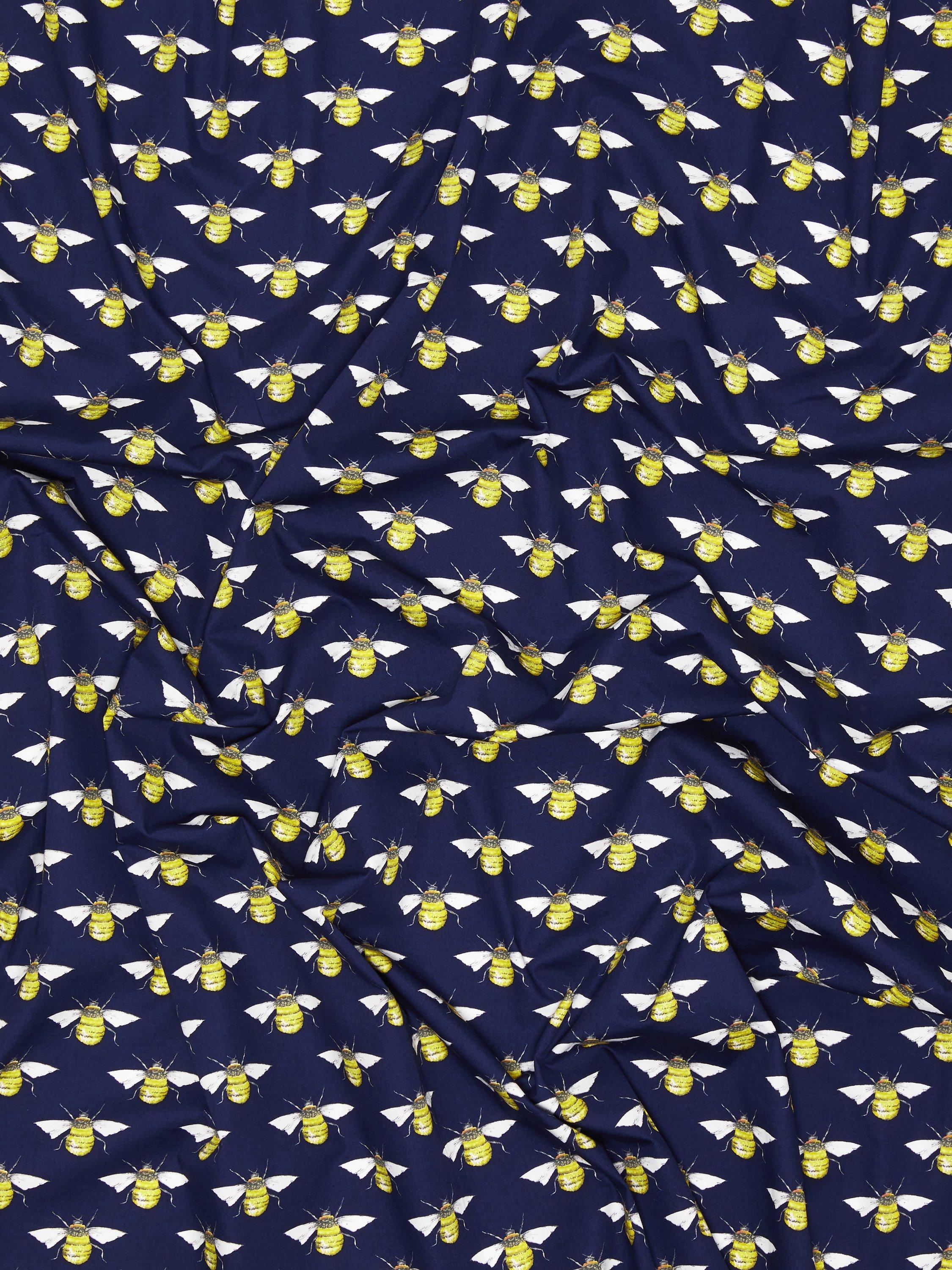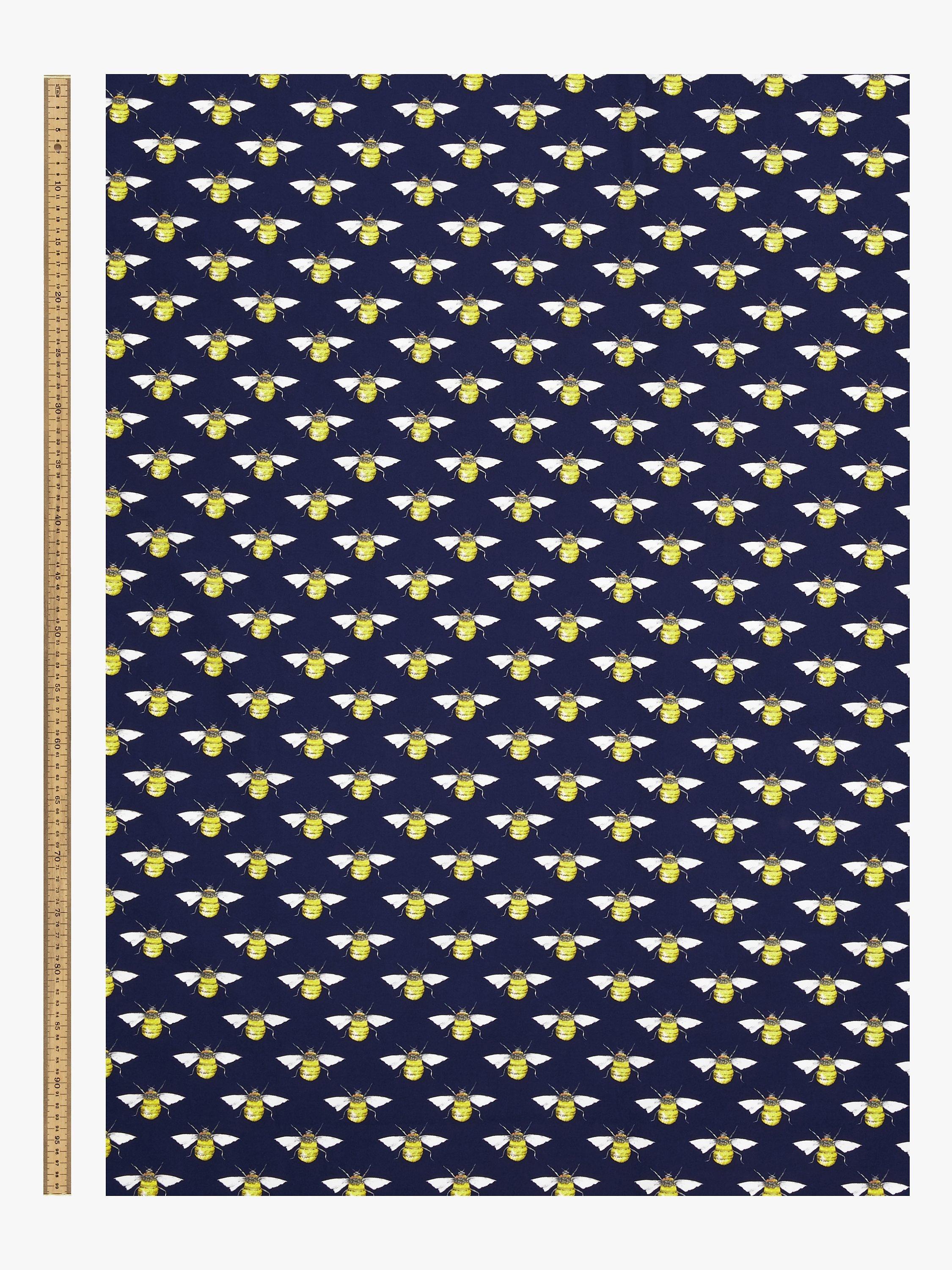 Constructed from pure cotton, this soft, poplin fabric features a traditional bee print and is suitable for dressmaking and craft projects.